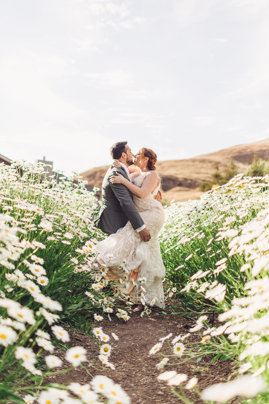 Amanda & Armen's wedding at Purgatory Resort in Durango, Colorado was a celebration that felt like stepping into a painting. Surrounded by the sweeping hills of the San Juan Mountains, their day began with portraits in the golden meadows above the resort — where endless rolling terrain and warm afternoon light created a landscape so cinematic it barely looked real. The ceremony unfolded beneath a handcrafted wooden arch draped in soft florals, tucked under the shade of graceful willow trees in the resort's garden. Every detail — from the wildflower fields in full bloom to the intimate energy of the gathering — reflected the couple's love for nature, beauty, and each other. Captured through the lens of Palms Isles wedding photography, this Durango mountain wedding gallery is a love letter to Colorado's wild and romantic southwest.
