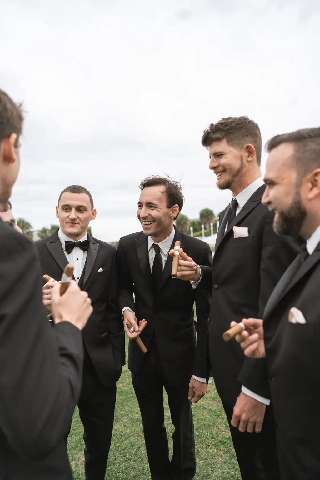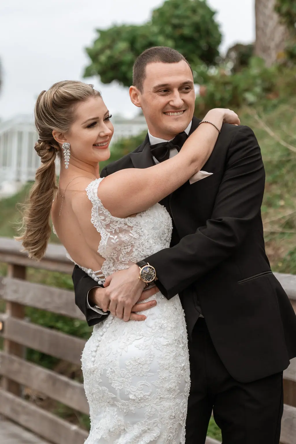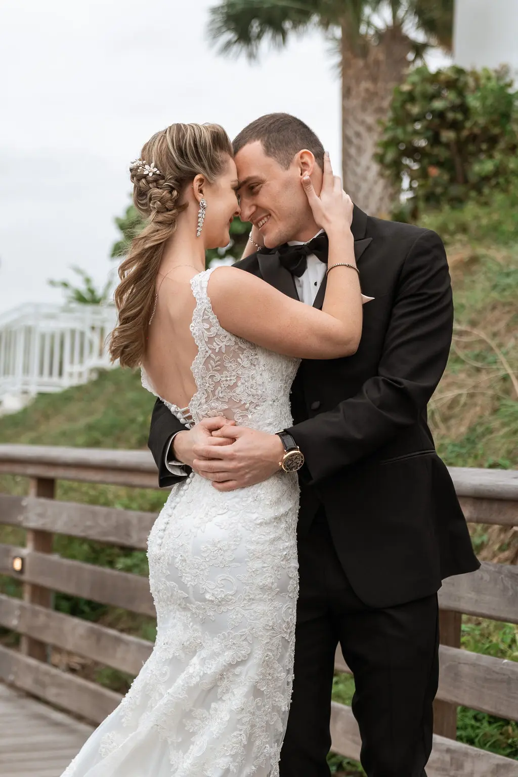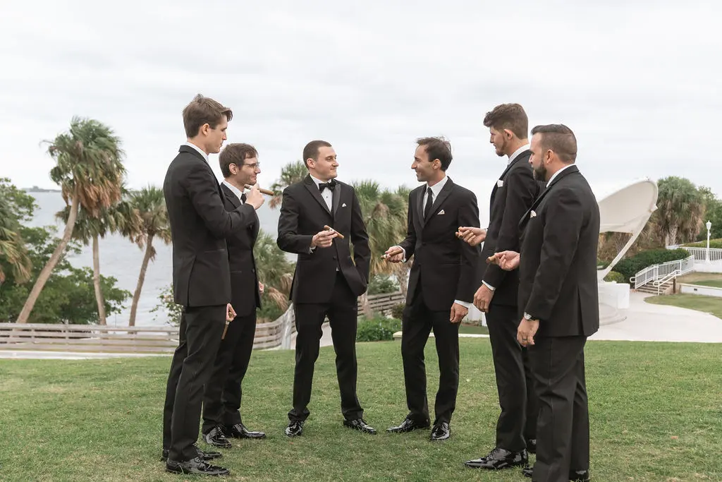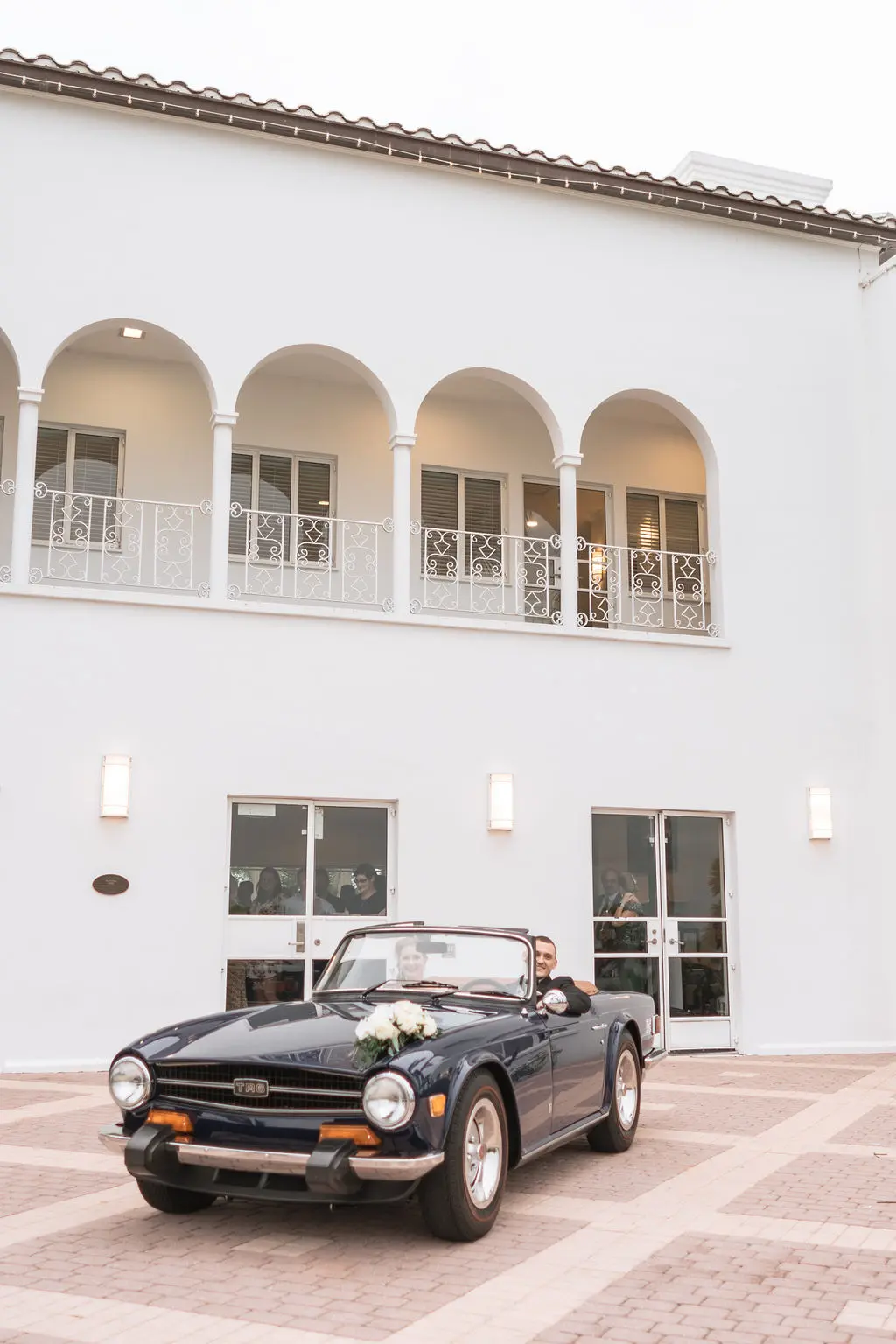 Amelia & Owen's wedding photography in Jupiter, Florida is effortless elegance from every angle. The stunning white Mediterranean-style estate with its arched colonnades and lush tropical palms created a backdrop that felt both grand and completely personal — and the vintage black convertible parked in the courtyard added a layer of character and nostalgic charm that made the portraits genuinely unforgettable. The kiss in front of that classic car, the white facade rising behind them, the warm August Florida light softened by a gentle overcast sky — it's an image that belongs on a gallery wall. Amelia's graceful gown and Owen's sharp suit reflected an impeccable aesthetic, while the warm, relaxed atmosphere of the celebration allowed the genuine joy between the couple and their closest people to come through in every single frame. Captured by Palms Isles Jupiter Florida wedding photography, this gallery is timeless, warm, and deeply beautiful.