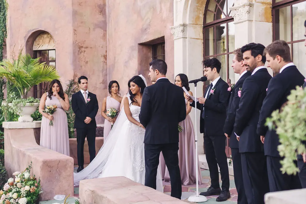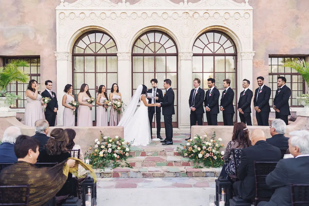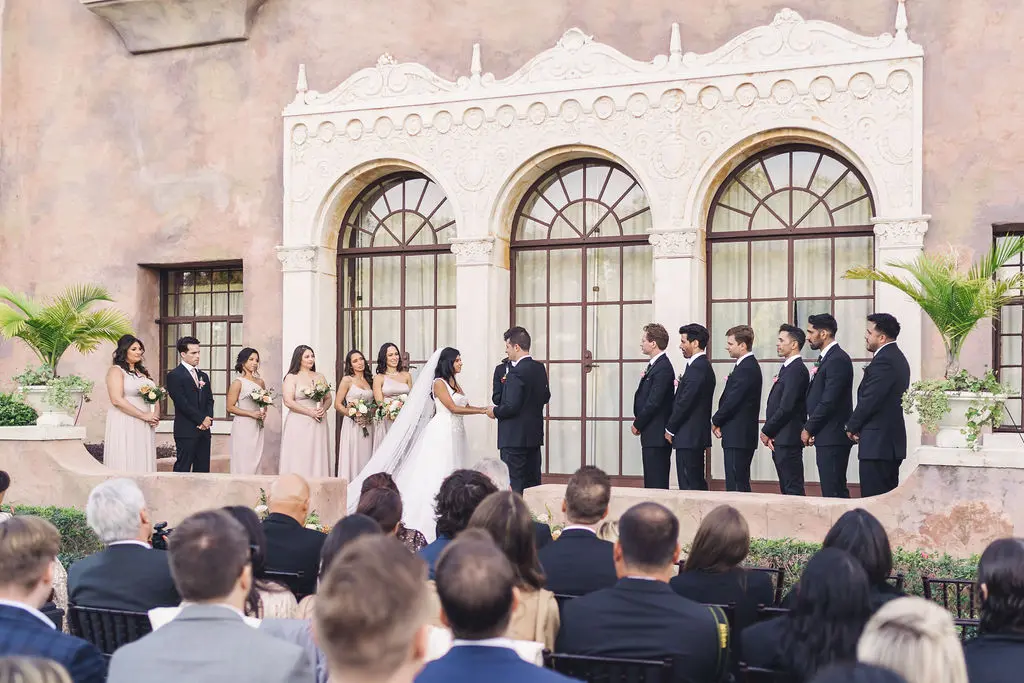 The Howey Mansion offers Orlando couples something no modern venue can replicate — nearly a century of history, architecture that feels European and distinctly Floridian all at once, and grounds that shift from formal lawn to lush courtyard to intimate garden throughout the property. Andrea & Evan's gallery explores all of it. From the emotional vow exchange to the laughter shared with family and friends, from the grand stone staircase portraits to the sweeping outdoor images bathed in Florida's warm evening light — every photograph tells a piece of their story with elegance and intention. The antique furnishings, the wrought iron railings, the sprawling ballroom, the ivy-draped facade — Howey Mansion is a photographer's dream, and Andrea & Evan's day made the most of every inch. If you're planning a wedding at Howey Mansion or anywhere in the Orlando and Central Florida area and looking for an Orlando wedding photographer who creates luxury, editorial galleries worthy of Florida's most beautiful venues, Palms Isles photographs weddings across Orlando, Tampa, and all of Florida.