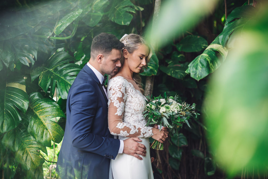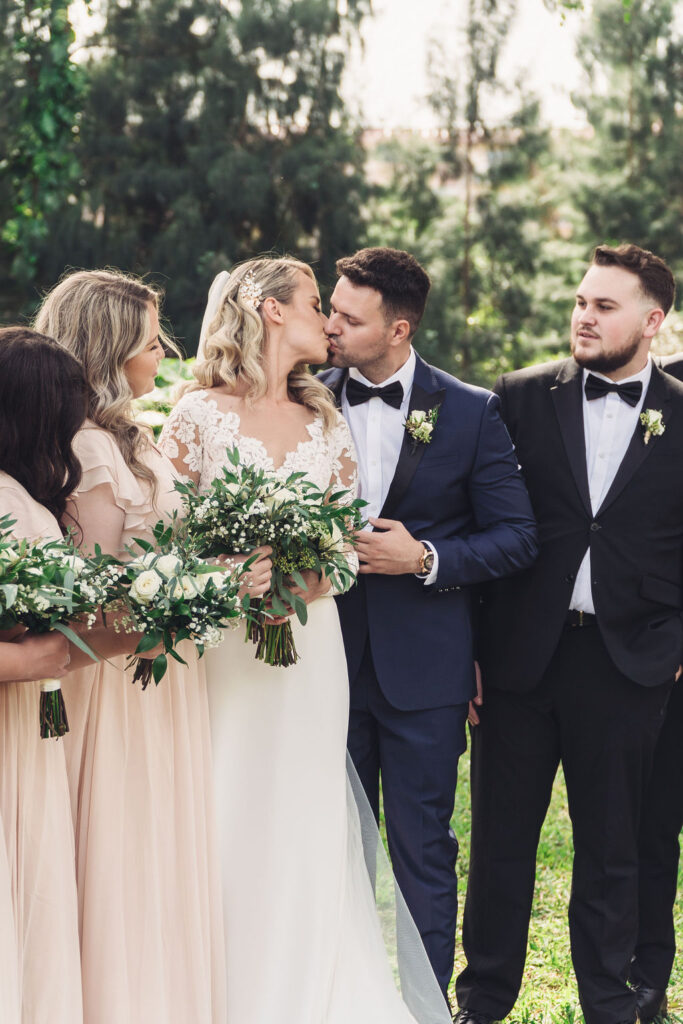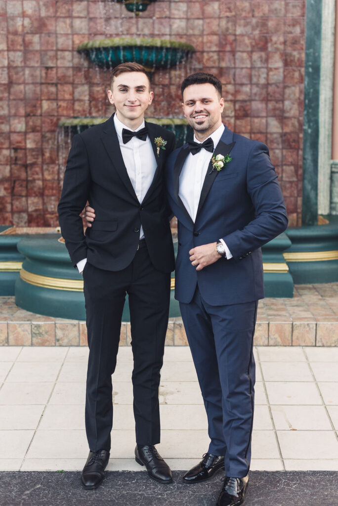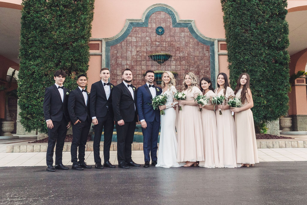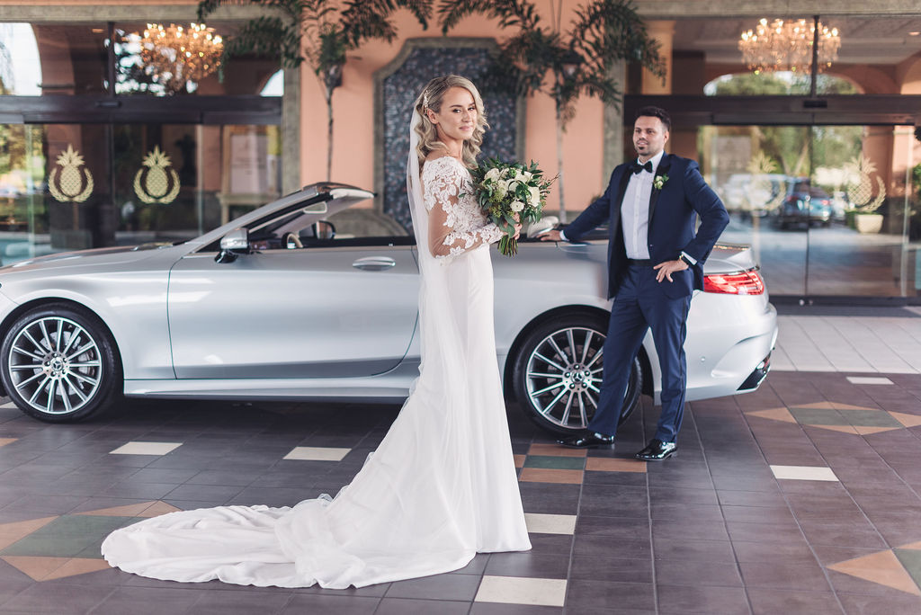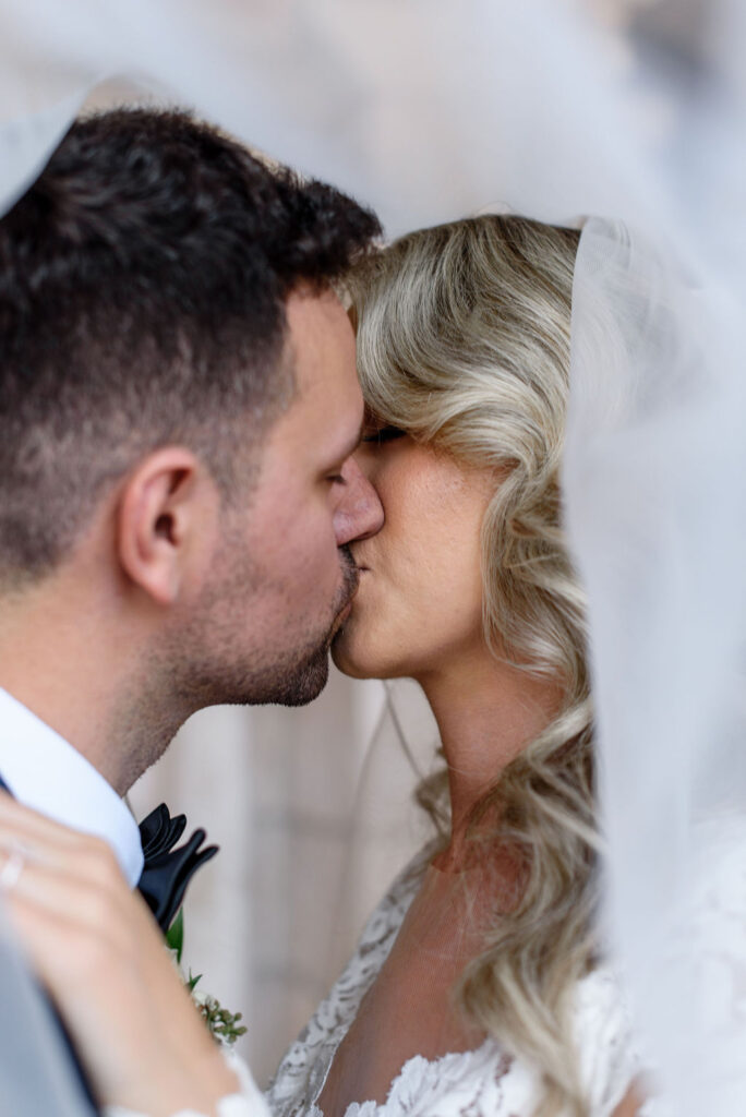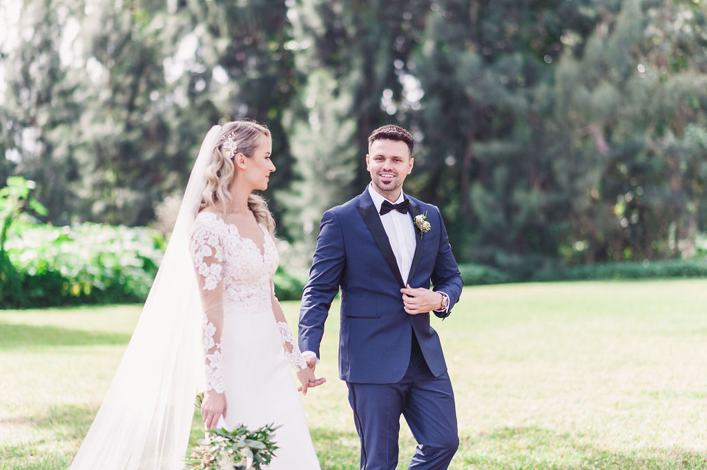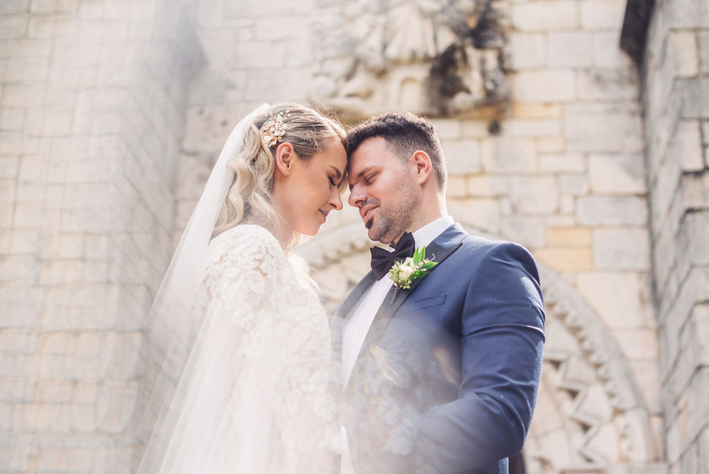 Anna & Marius's wedding photography at The Ancient Spanish Monastery in Miami is one of the most visually stunning galleries in our entire portfolio. Built in 12th-century Spain and reassembled stone by stone in North Miami Beach, this extraordinary venue delivers a backdrop so cinematic it barely feels real — and yet every emotion in these images is completely genuine. Anna was breathtaking in an intricate illusion lace long-sleeve gown with a cathedral veil, holding a lush greenery-and-white rose bouquet, while Marius stood beside her in a sharp navy tuxedo looking every bit as polished as the 900-year-old stone archway framing them both. Foreheads together, eyes closed, completely lost in each other — this portrait is timeless in every sense of the word. Captured by Palms Isles Miami wedding photography, this gallery is historic, romantic, and impossibly beautiful.