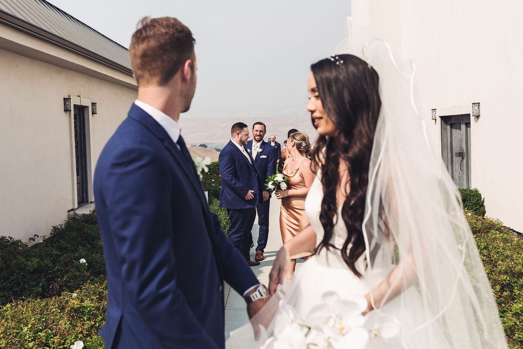Corey & Ariel’s wedding at Willow Heights Mansion in Morgan Hill, California was a stylish celebration set against sweeping hillside views, clean architecture, and soft Northern California light. Their ceremony felt intimate and cinematic, with guests gathered on the lawn as the landscape opened up behind them. Ariel looked effortlessly elegant, and Corey’s calm energy made every moment feel grounded and genuine. From refined bridal party portraits on the mansion steps to romantic couple photos framed by the valley, this Morgan Hill wedding blended modern elegance with heartfelt emotion—captured through the lens of Palms Isles wedding photography.