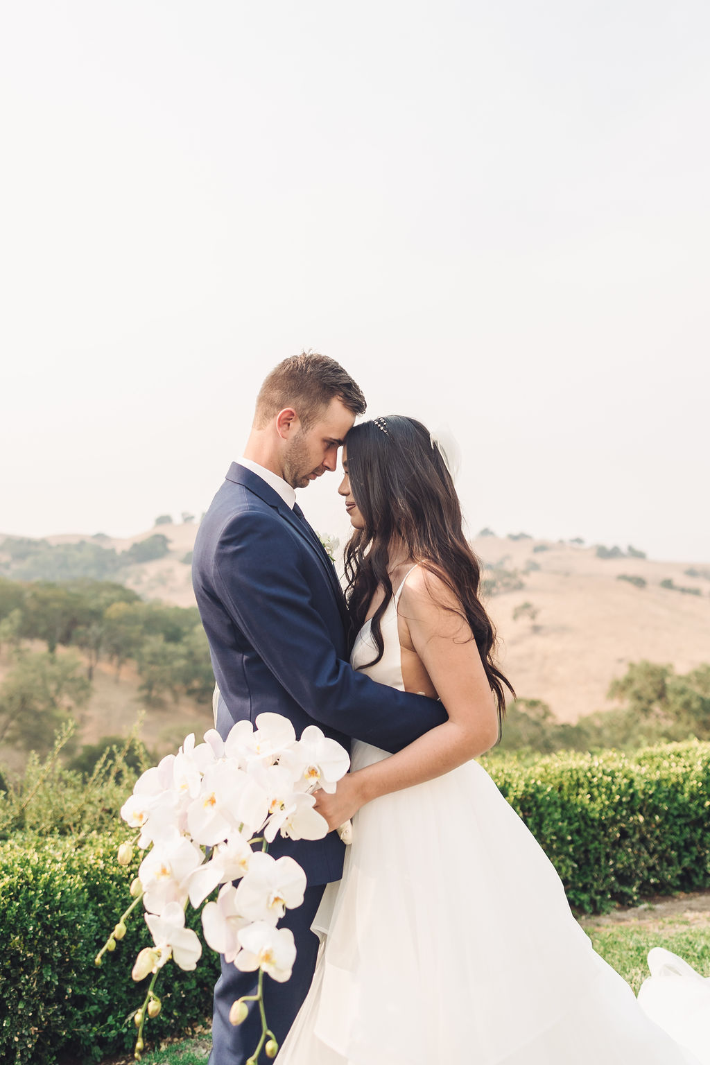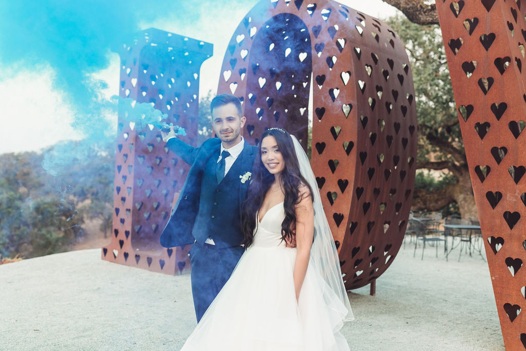 As the day unfolded, the details and setting came together beautifully: airy neutrals, timeless florals, and a reception atmosphere that felt both elevated and relaxed. Some of the most memorable moments happened in the quiet—soft forehead touches, a gentle embrace in the hills, and playful portraits beneath the venue’s iconic LOVE sculpture. This gallery tells a polished, emotional story of connection and celebration, preserving the feeling of the day as much as the look. Captured by Palms Isles, this wedding photography in Morgan Hill, CA highlights the charm of Willow Heights Mansion, blending editorial portraits with candid, documentary moments in a timeless wedding album.