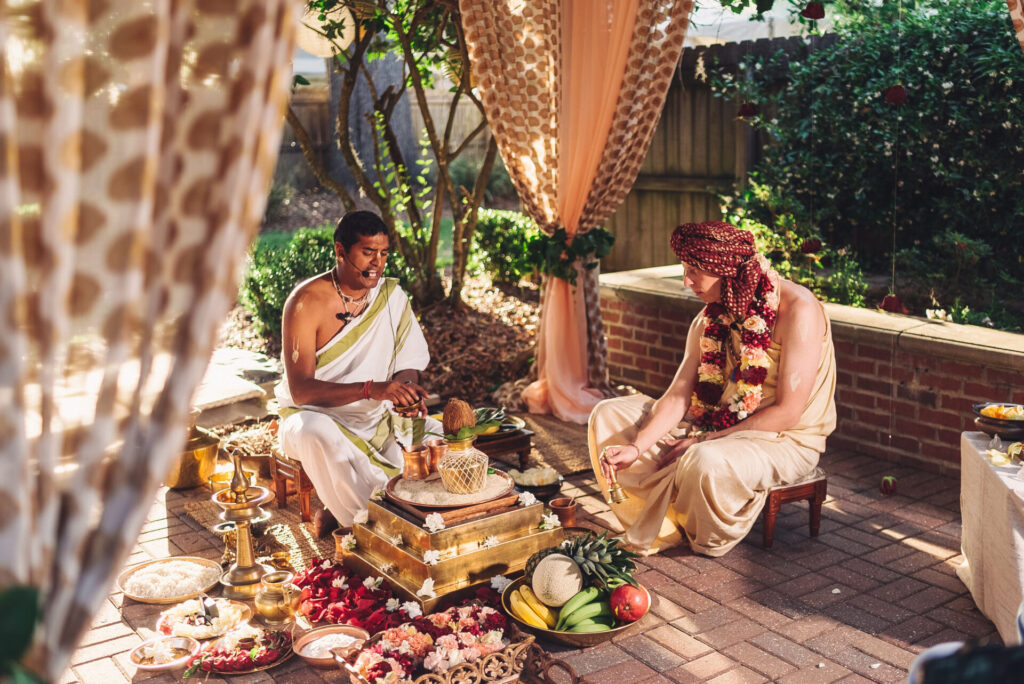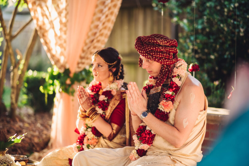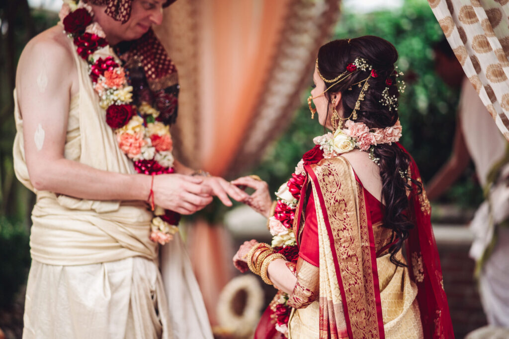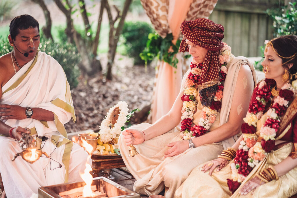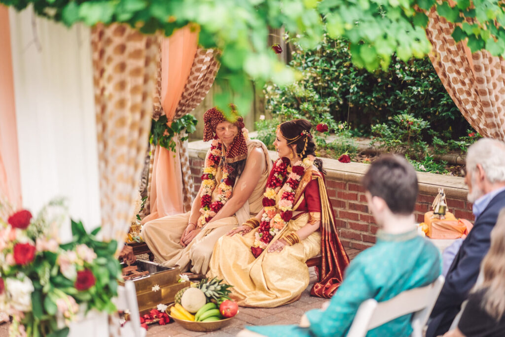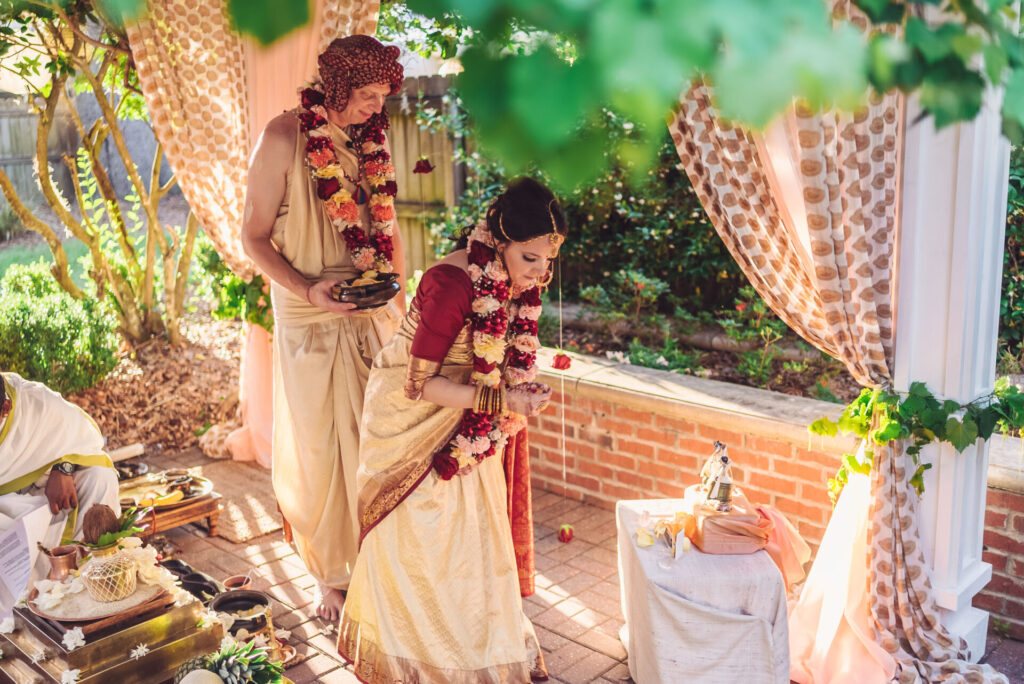 Jordanna & Klaus's Indian wedding photography at the Historic Thomas Center in Gainesville, Florida is a breathtaking celebration of cultural tradition, sacred ritual, and genuine love. The venue's charming veranda, lush West Gardens, Turtle Court, and the vibrant Spanish Court created a series of naturally beautiful settings that shifted beautifully from the intimate and sacred to the joyful and celebratory. Jordanna wore a stunning traditional red and gold saree with fresh floral garlands, while Klaus was adorned in a rich maroon turban and traditional ceremony attire — the two of them seated together in a ceremony moment so full of meaning and beauty that every frame feels like it belongs in a cultural editorial. The sacred rituals, the vibrant hues, the deep emotions flowing between two families uniting in love — all captured with artistry and genuine care. Captured by Palms Isles Orlando Indian wedding photography, this Gainesville gallery is vivid, meaningful, and deeply beautiful.