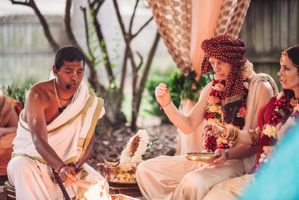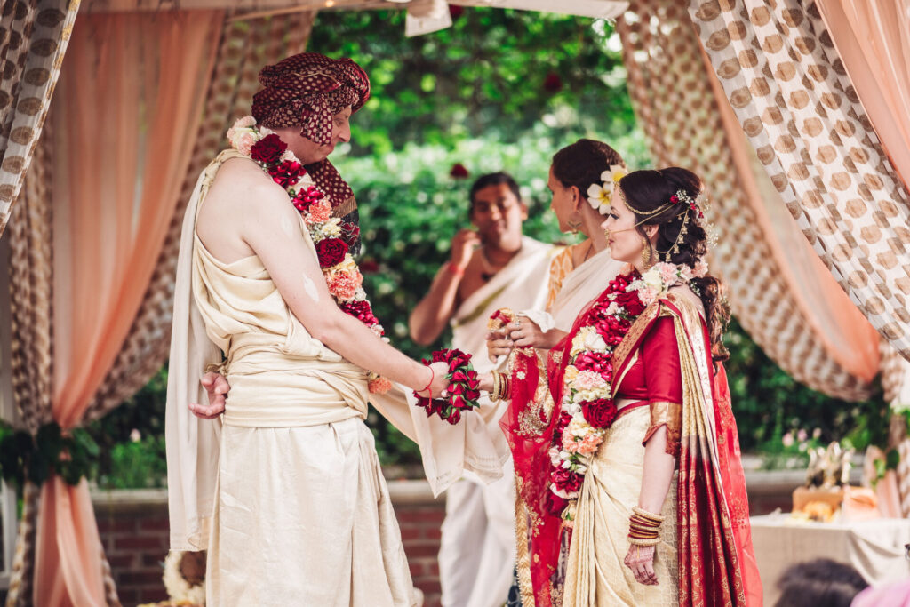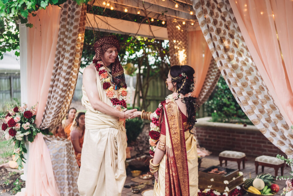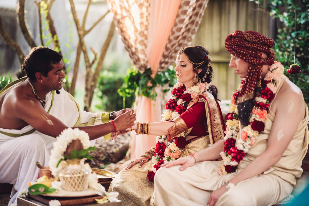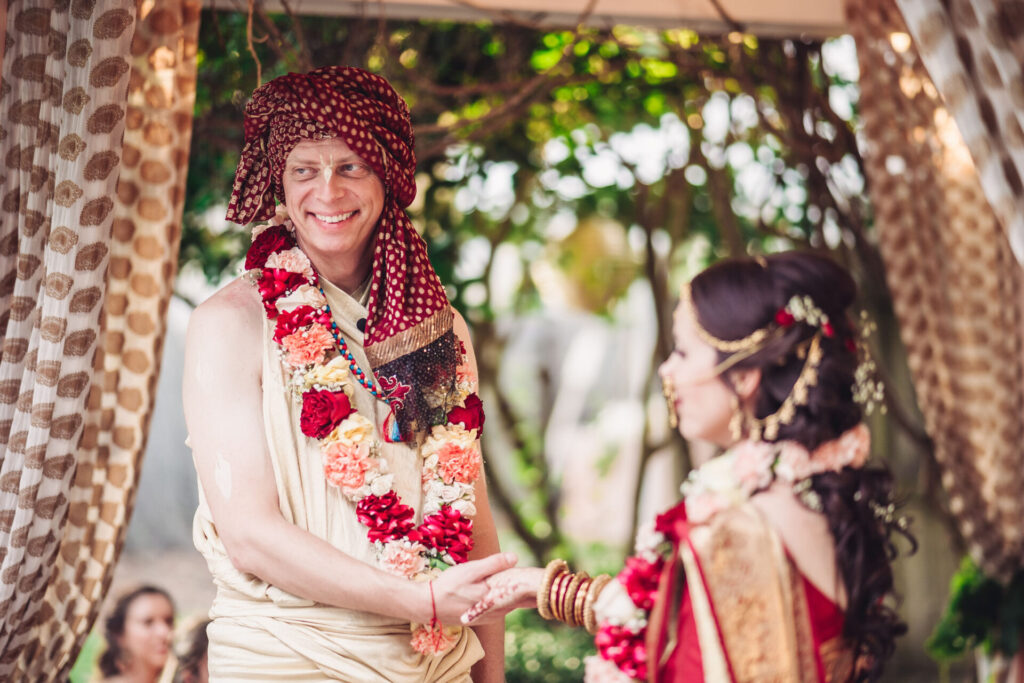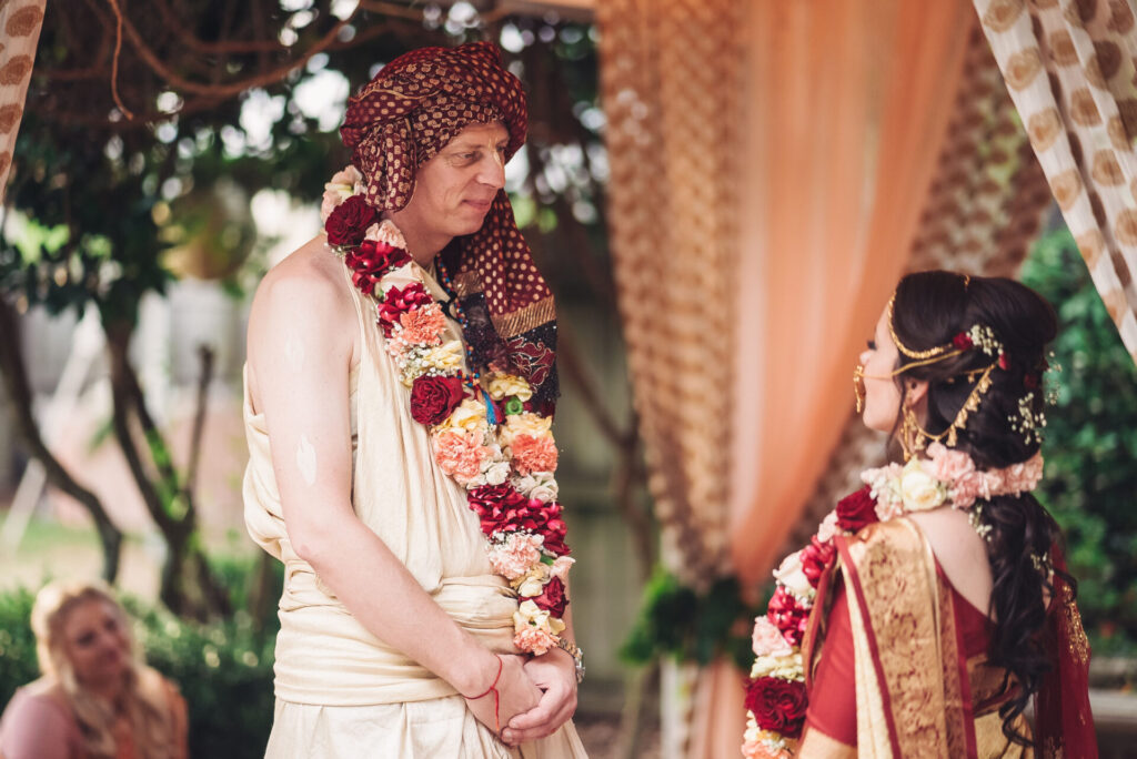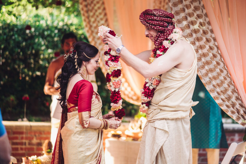 Jordanna & Klaus's Indian wedding photography at the Historic Thomas Center in Gainesville, Florida is a breathtaking celebration of cultural tradition, sacred ritual, and genuine love. The venue's charming veranda, lush West Gardens, Turtle Court, and the vibrant Spanish Court created a series of naturally beautiful settings that shifted beautifully from the intimate and sacred to the joyful and celebratory. Jordanna wore a stunning traditional red and gold saree with fresh floral garlands, while Klaus was adorned in a rich maroon turban and traditional ceremony attire — the two of them seated together in a ceremony moment so full of meaning and beauty that every frame feels like it belongs in a cultural editorial. The sacred rituals, the vibrant hues, the deep emotions flowing between two families uniting in love — all captured with artistry and genuine care. Captured by Palms Isles Orlando Indian wedding photography, this Gainesville gallery is vivid, meaningful, and deeply beautiful.