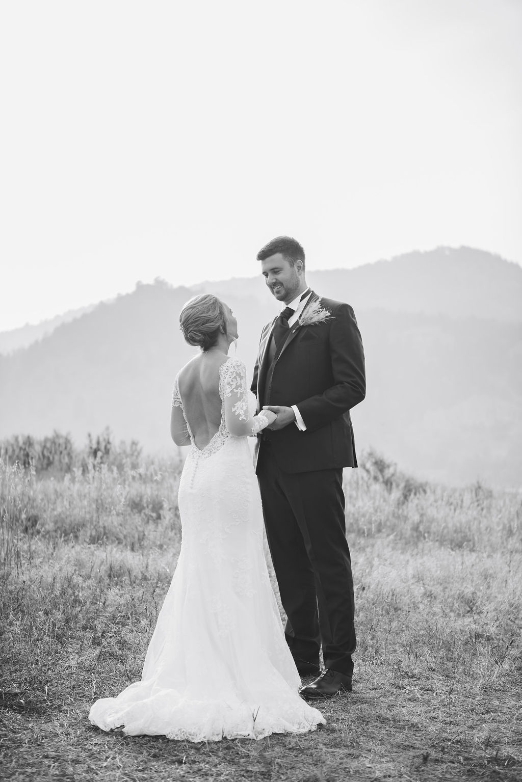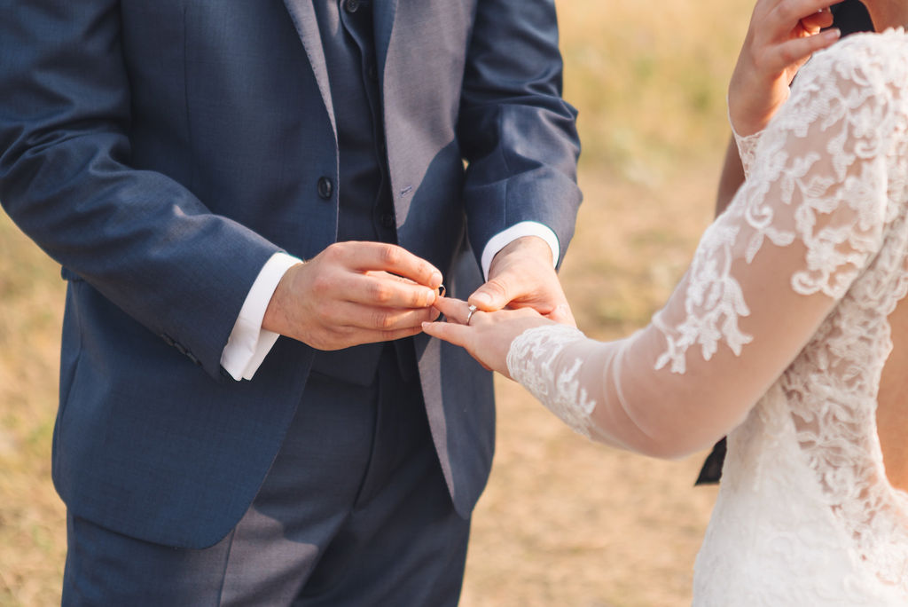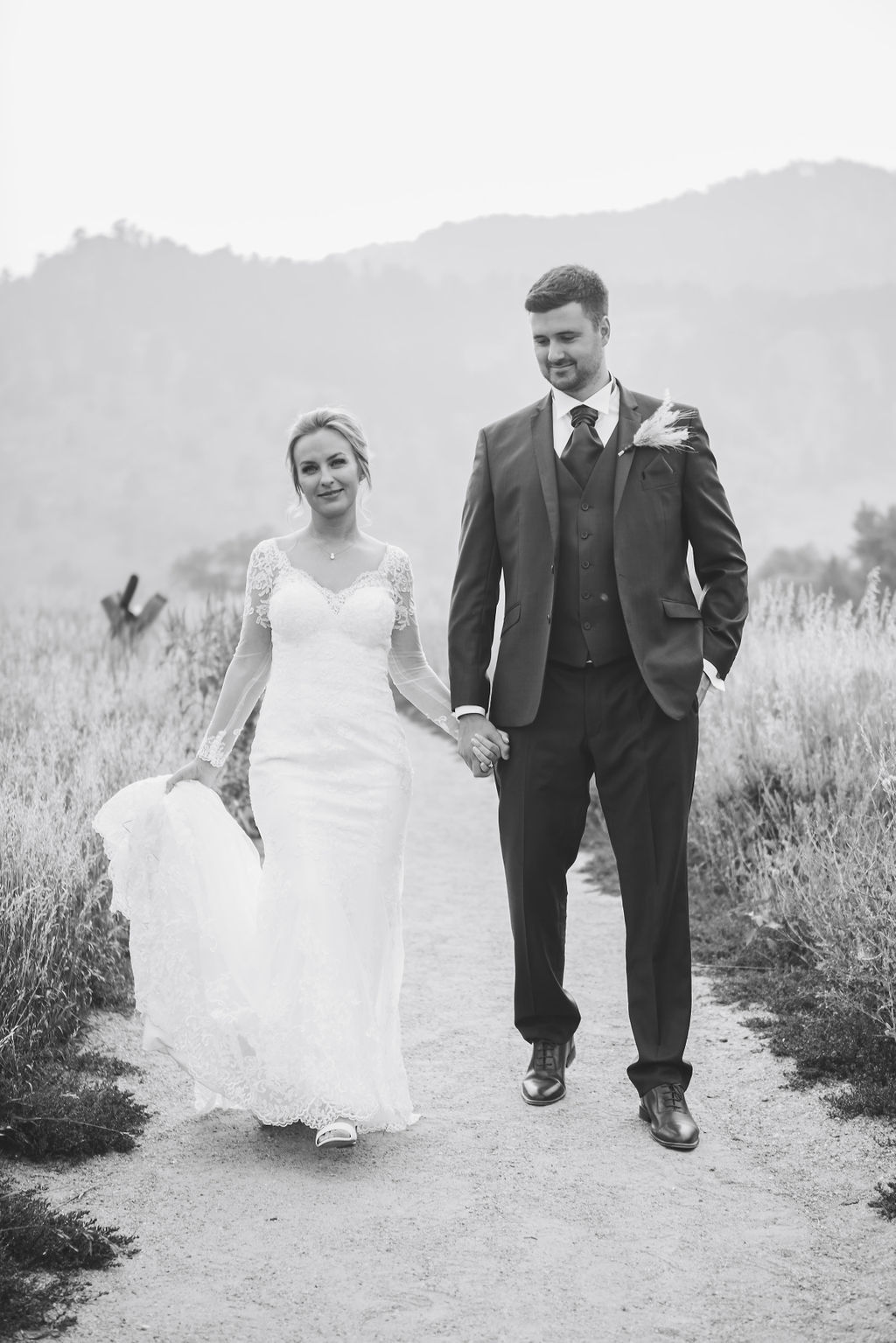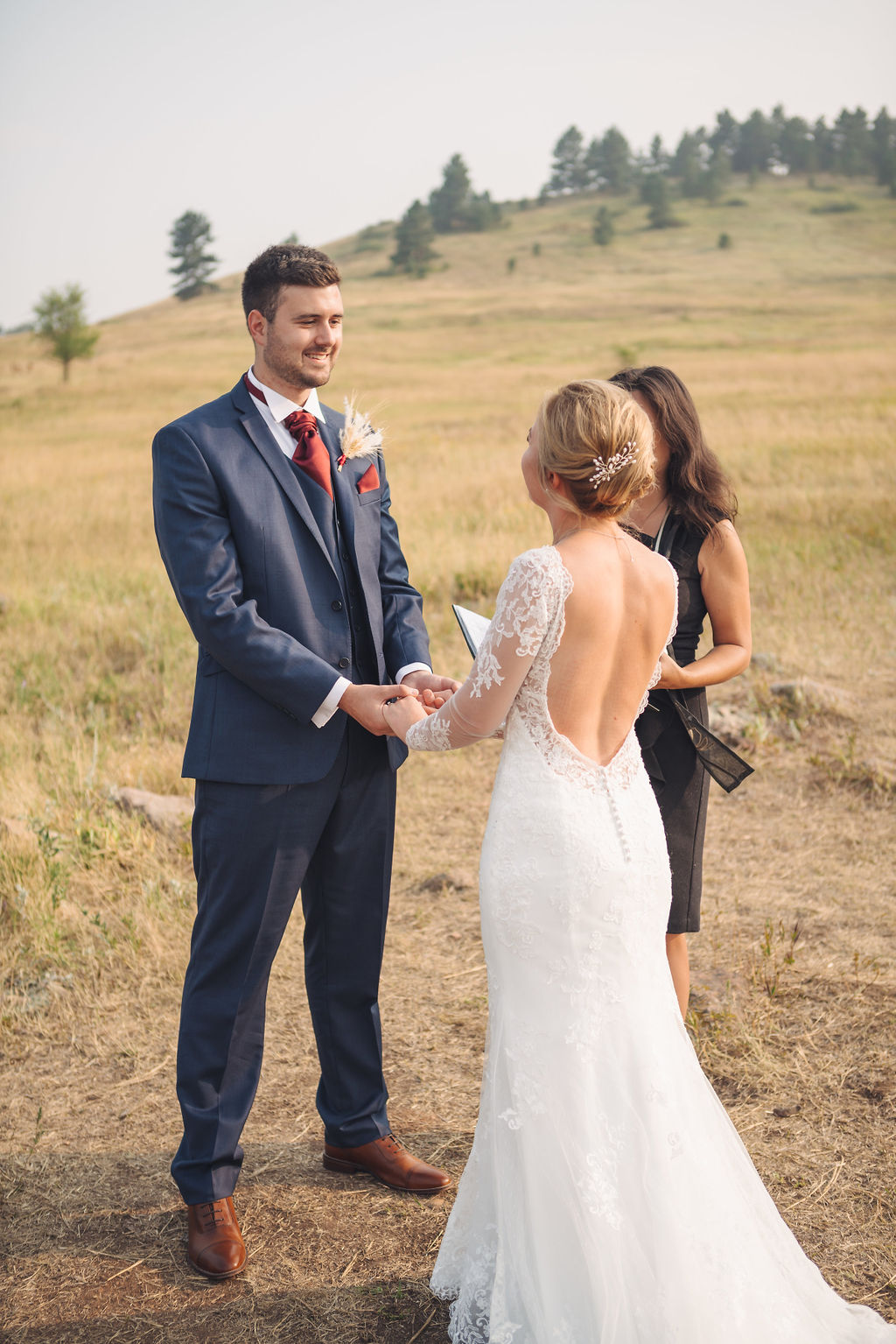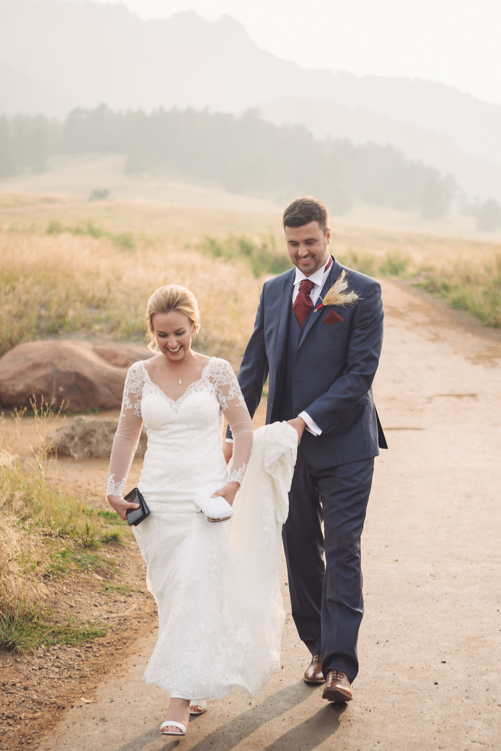 Laura & Jack's wedding in the Colorado foothills was pure magic — a rustic ranch celebration wrapped in golden light, open meadows, and the kind of mountain backdrop that makes Colorado one of the most beautiful places in the world to get married. With the Rocky Mountain peaks rising in the distance and tall grass swaying in the warm summer breeze, their day felt like something out of a film. A lace gown, a navy suit with burgundy details, a weathered wooden fence, and a vintage muscle car gave the day a character all its own — romantic, adventurous, and unmistakably personal. Captured through the lens of Palms Isles wedding photography, this Colorado ranch wedding gallery celebrates the beauty of love set against wide open skies and untouched nature.