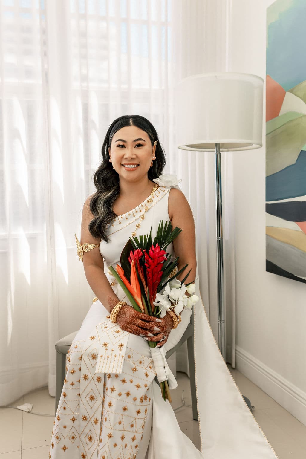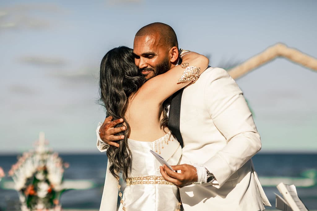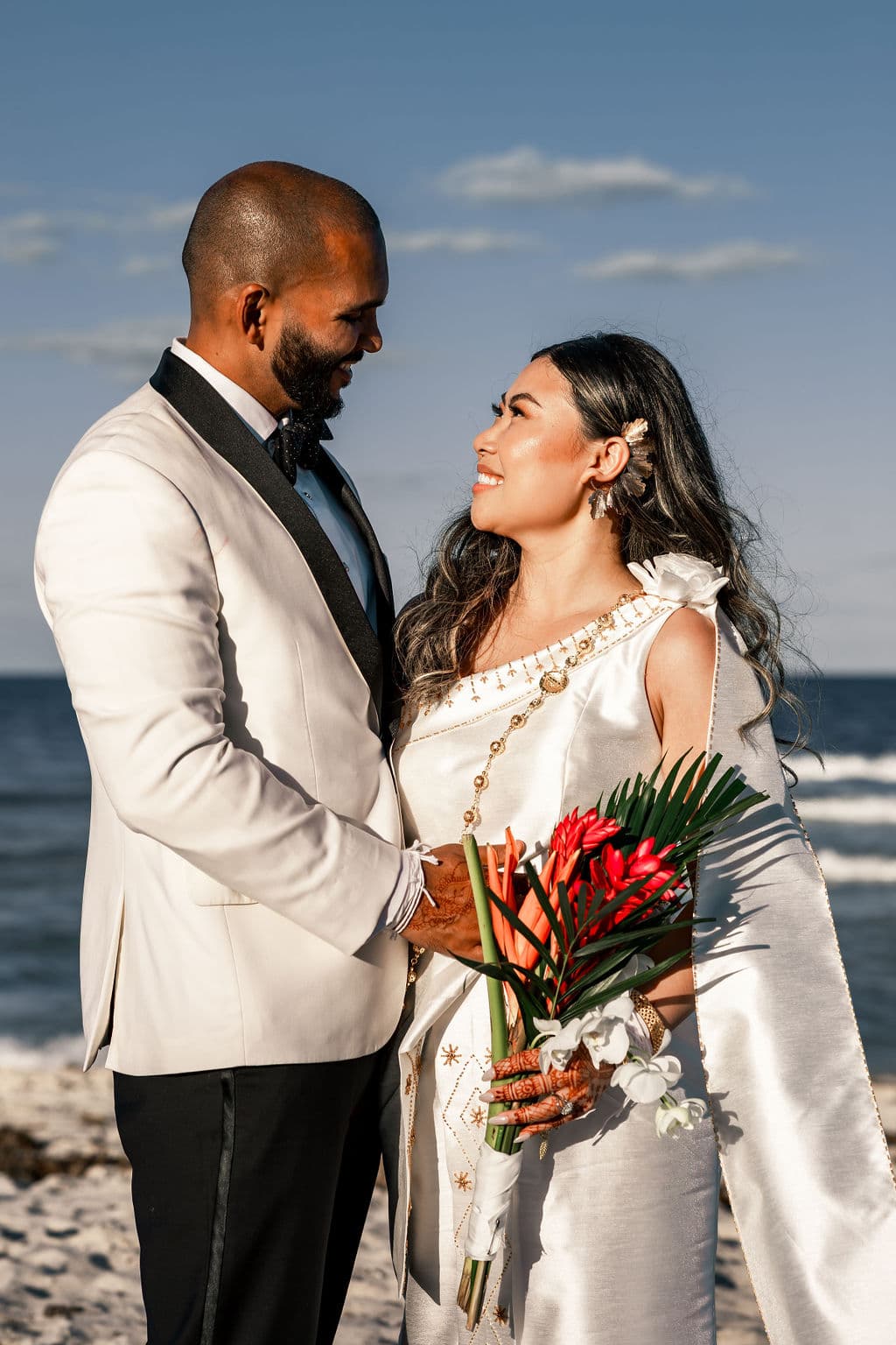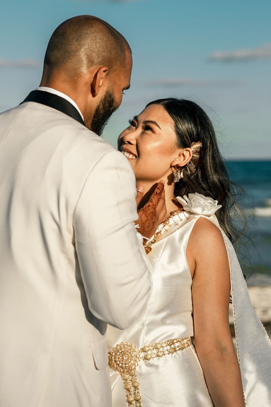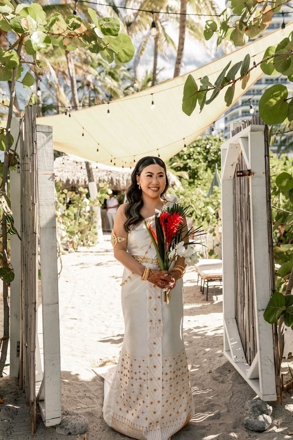 Naly & Vick's wedding photography on Miami's ocean shore is a deeply moving and visually stunning celebration of love, heritage, and tradition. The Atlantic as the ceremony backdrop, the sound of waves accompanying every sacred ritual, and the warm April light wrapping around two people honoring their roots while beginning their future together — every frame of their gallery carries a weight and beauty that is rare and completely captivating. Naly was radiant in a beautifully adorned white gown with traditional gold jewelry, while Vick stood beside her in a crisp white suit, both of them glowing with the kind of joy that comes from a ceremony that truly means something. The tears of happiness, the warm family embraces, the heartfelt smiles — all captured with honesty and care by Palms Isles Miami wedding photography, creating a gallery that tells their full love story with depth and meaning.
