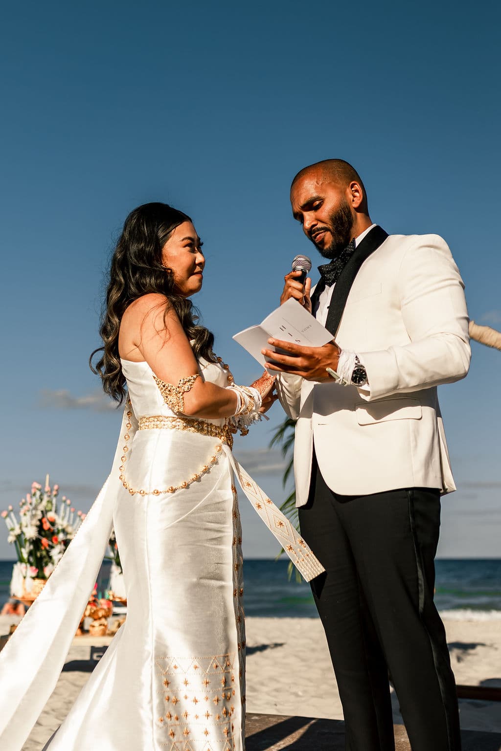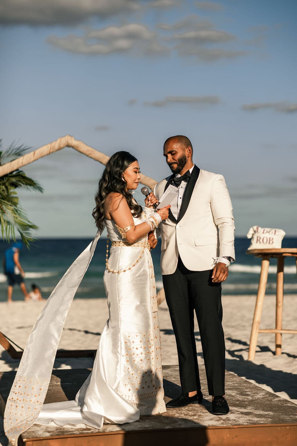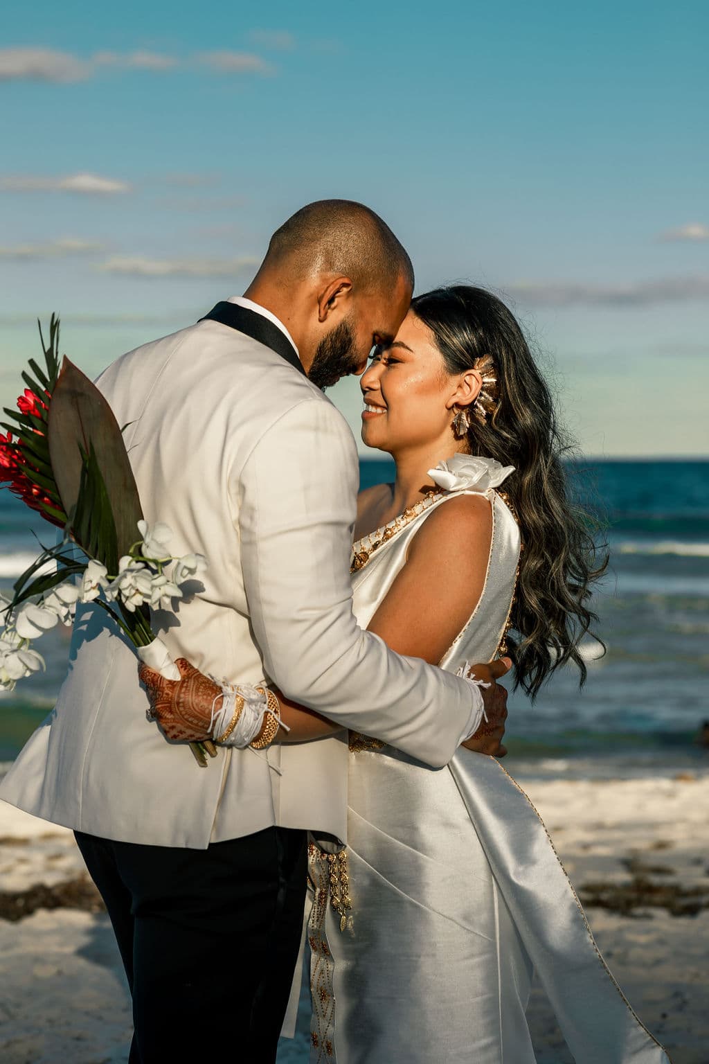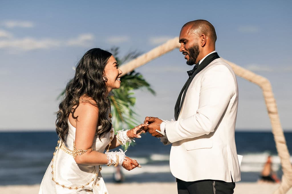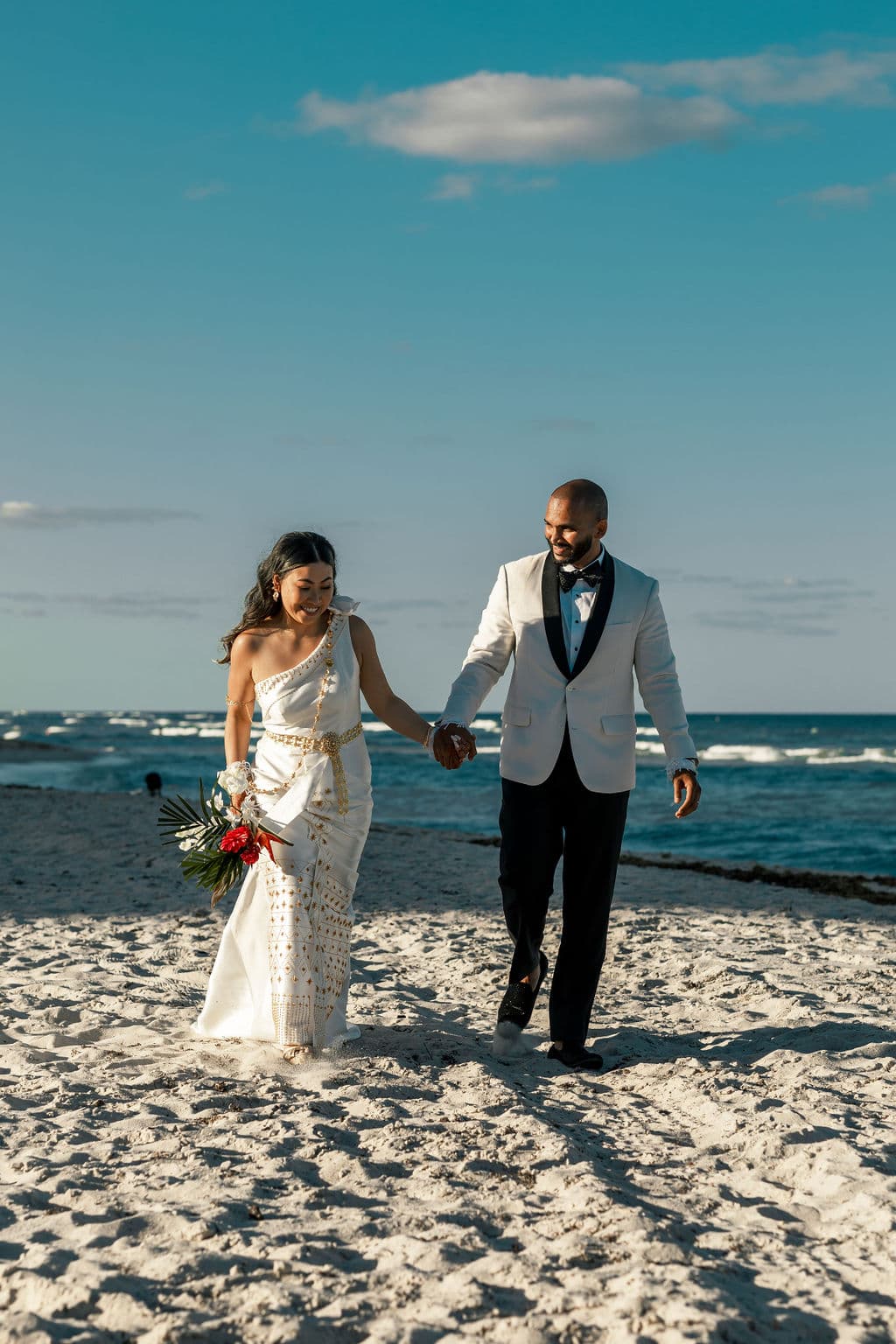 Naly & Vick's wedding photography on Miami's ocean shore is a deeply moving and visually stunning celebration of love, heritage, and tradition. The Atlantic as the ceremony backdrop, the sound of waves accompanying every sacred ritual, and the warm April light wrapping around two people honoring their roots while beginning their future together — every frame of their gallery carries a weight and beauty that is rare and completely captivating. Naly was radiant in a beautifully adorned white gown with traditional gold jewelry, while Vick stood beside her in a crisp white suit, both of them glowing with the kind of joy that comes from a ceremony that truly means something. The tears of happiness, the warm family embraces, the heartfelt smiles — all captured with honesty and care by Palms Isles Miami wedding photography, creating a gallery that tells their full love story with depth and meaning.