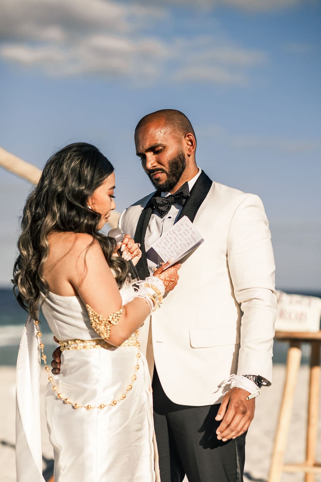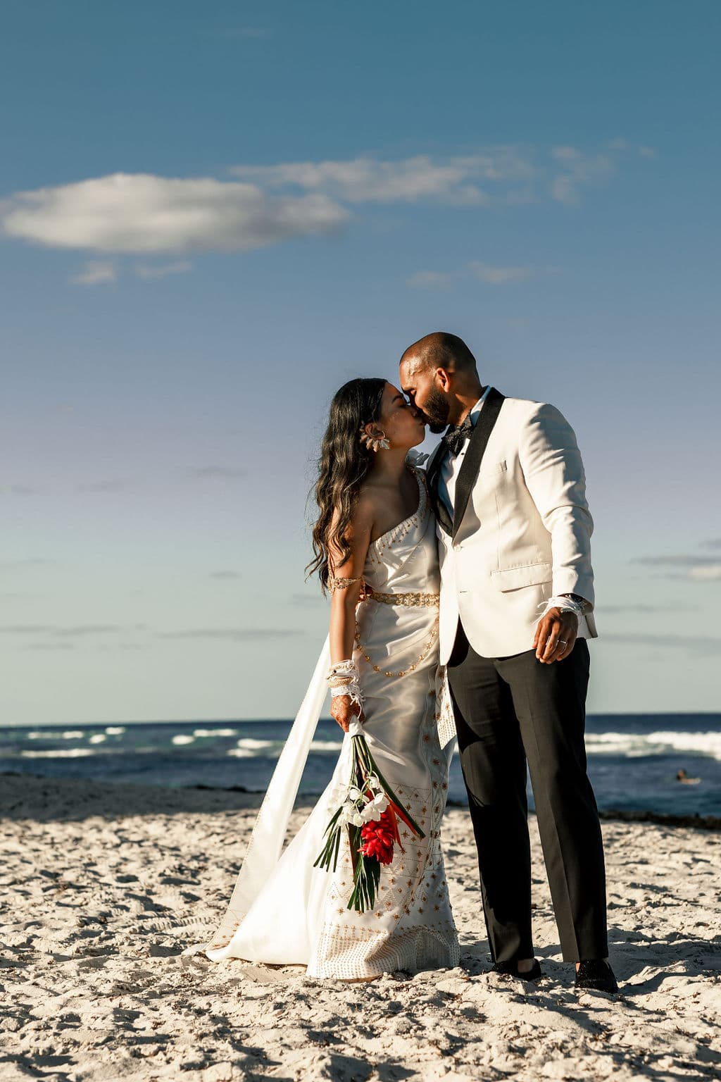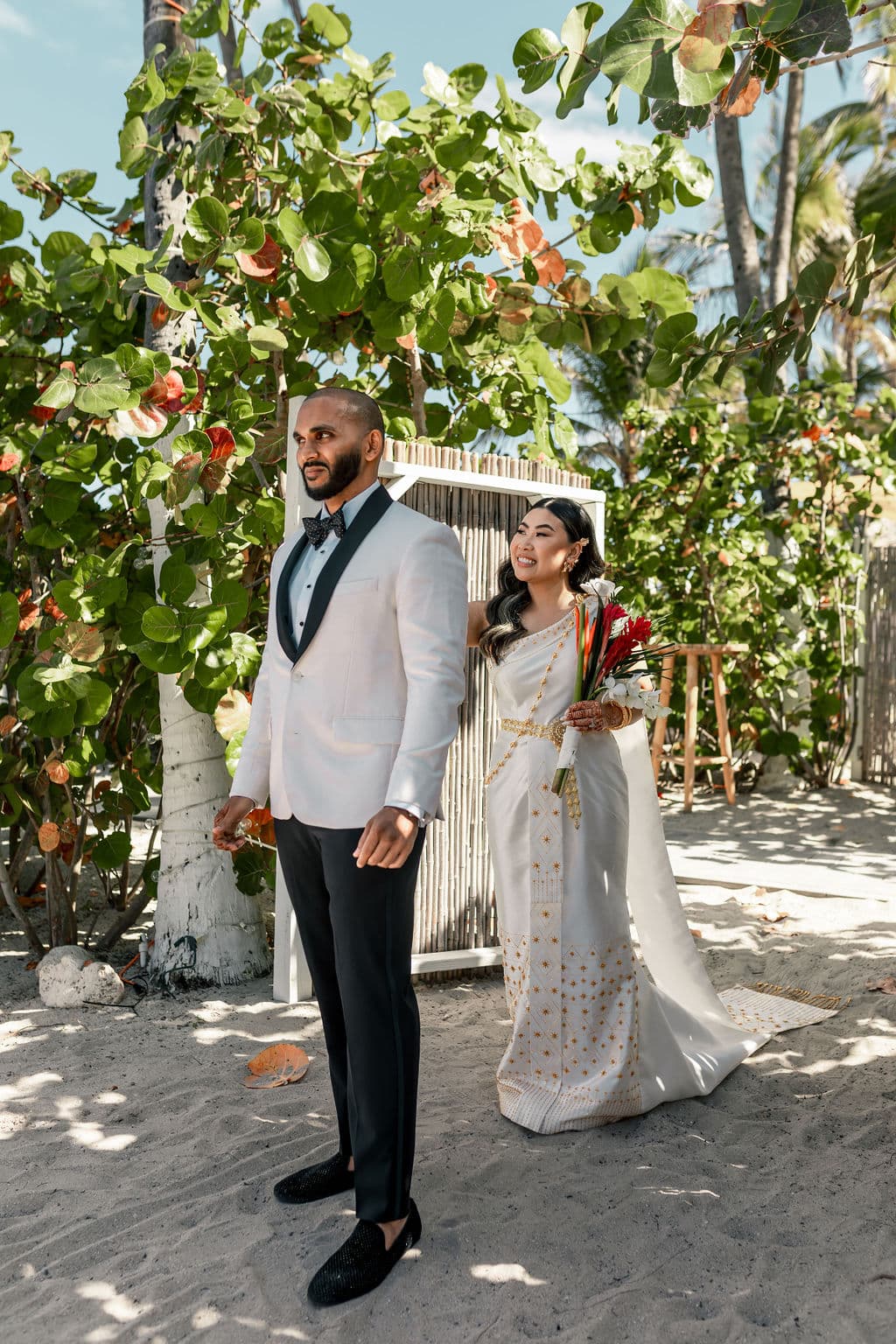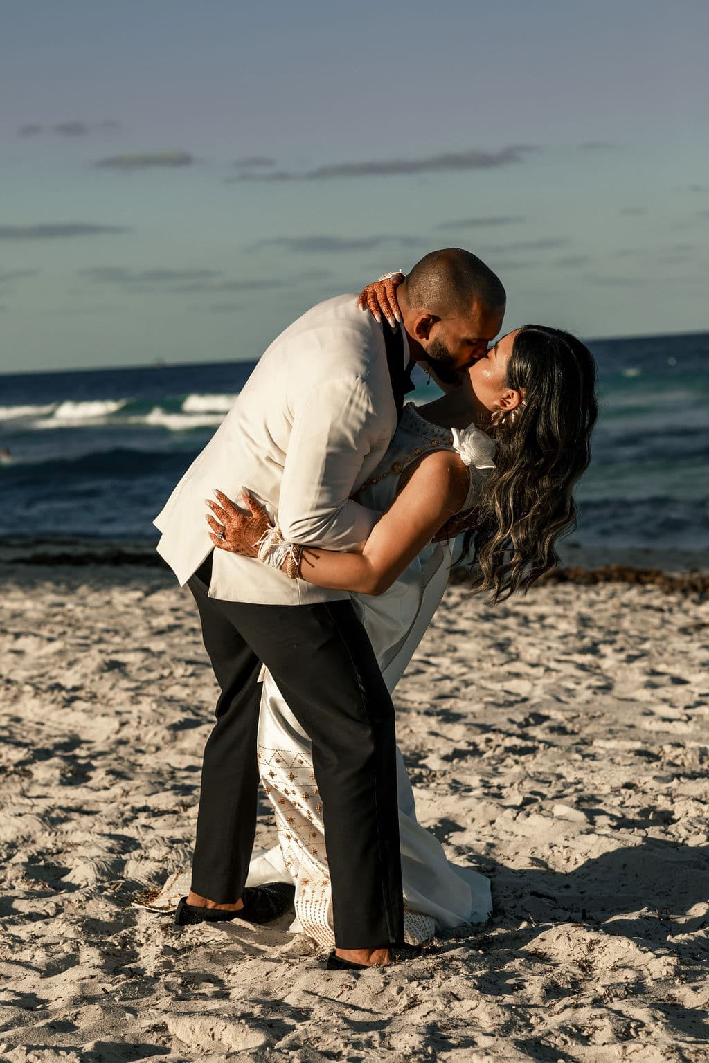 Naly & Vick's wedding photography on Miami's ocean shore is a deeply moving and visually stunning celebration of love, heritage, and tradition. The Atlantic as the ceremony backdrop, the sound of waves accompanying every sacred ritual, and the warm April light wrapping around two people honoring their roots while beginning their future together — every frame of their gallery carries a weight and beauty that is rare and completely captivating. Naly was radiant in a beautifully adorned white gown with traditional gold jewelry, while Vick stood beside her in a crisp white suit, both of them glowing with the kind of joy that comes from a ceremony that truly means something. The tears of happiness, the warm family embraces, the heartfelt smiles — all captured with honesty and care by Palms Isles Miami wedding photography, creating a gallery that tells their full love story with depth and meaning.