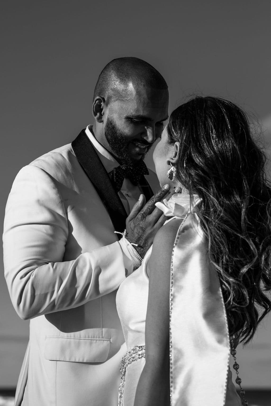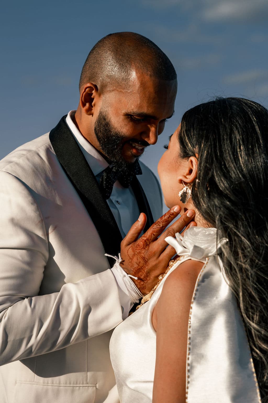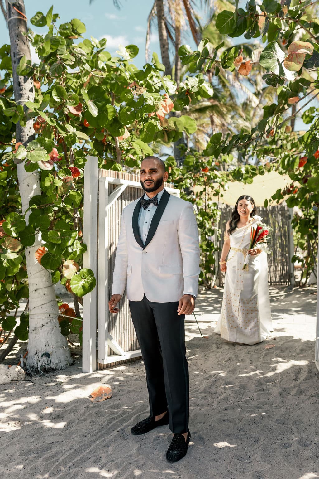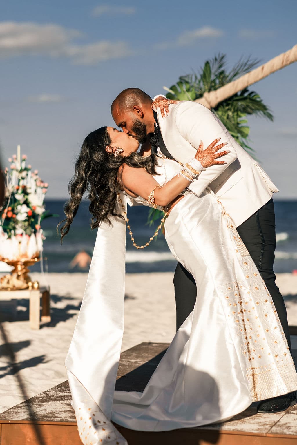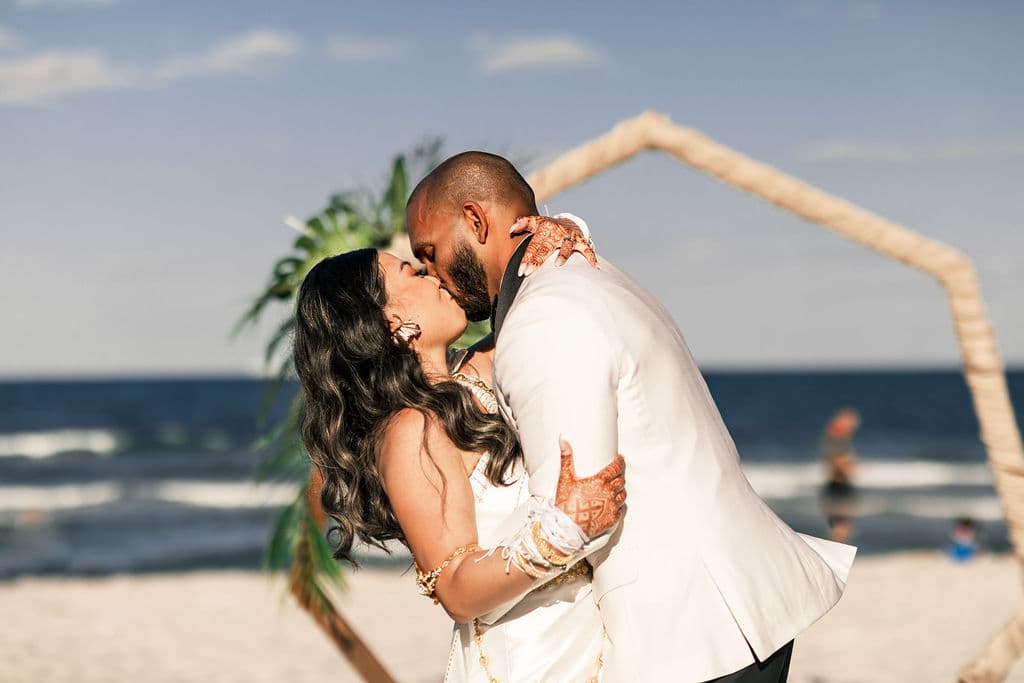Naly & Vick's wedding photography on Miami's ocean shore is a deeply moving and visually stunning celebration of love, heritage, and tradition. The Atlantic as the ceremony backdrop, the sound of waves accompanying every sacred ritual, and the warm April light wrapping around two people honoring their roots while beginning their future together — every frame of their gallery carries a weight and beauty that is rare and completely captivating. Naly was radiant in a beautifully adorned white gown with traditional gold jewelry, while Vick stood beside her in a crisp white suit, both of them glowing with the kind of joy that comes from a ceremony that truly means something. The tears of happiness, the warm family embraces, the heartfelt smiles — all captured with honesty and care by Palms Isles Miami wedding photography, creating a gallery that tells their full love story with depth and meaning.