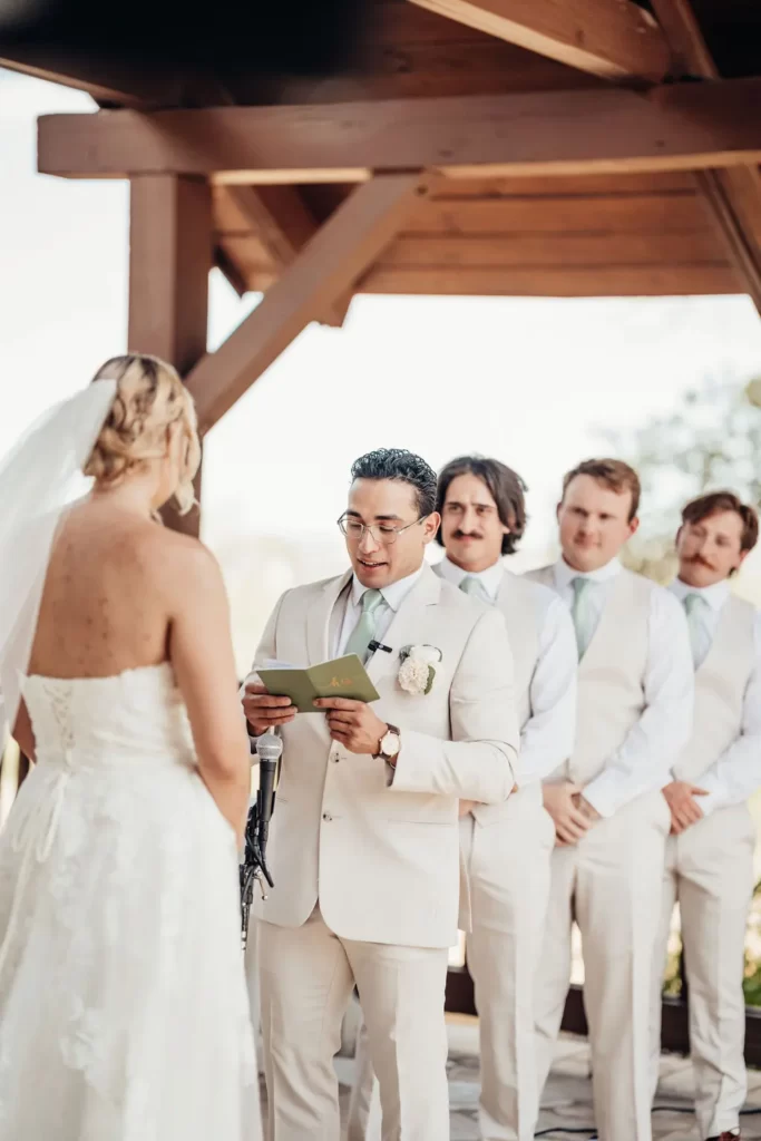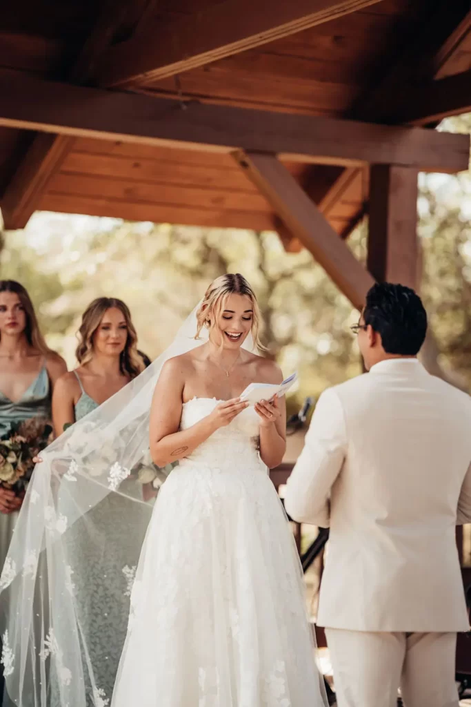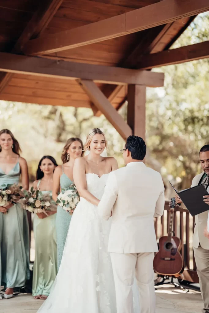 On the picturesque grounds of Napa, Omar & Ella celebrated their love in a setting embraced by nature. Their venue, surrounded by towering trees and featuring a covered ceremony terrace, provided the perfect backdrop for their vows. The rustic charm of the reception hall, adorned with native stone and wood accents, added warmth and elegance to the occasion. Every wedding photo beautifully reflects the harmony between their love and the natural beauty surrounding them, creating timeless memories of their special day.