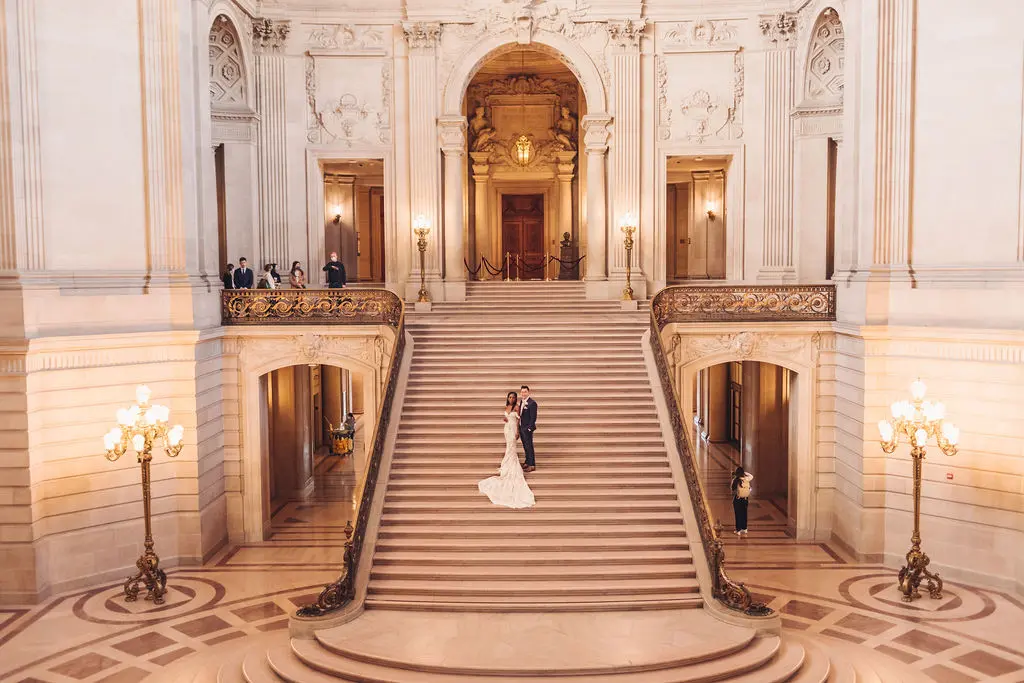 A wedding at San Francisco City Hall is a spectacular choice, with its grand historical architecture providing the perfect backdrop for your special day. The spacious interior offers an ideal setting for both photos and guests, making for unforgettable memories. The photos captured here are breathtaking, reflecting the beauty of your love in such a timeless and elegant setting. We wish Scarlett and Hudson a lifetime of love, laughter, and treasured moments. May your love only grow stronger with each passing day. With the right team by your side, all you'll need to focus on is each other and the love you share.