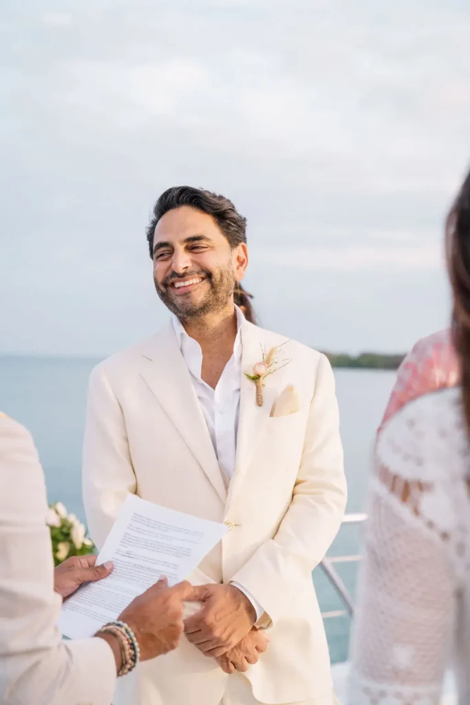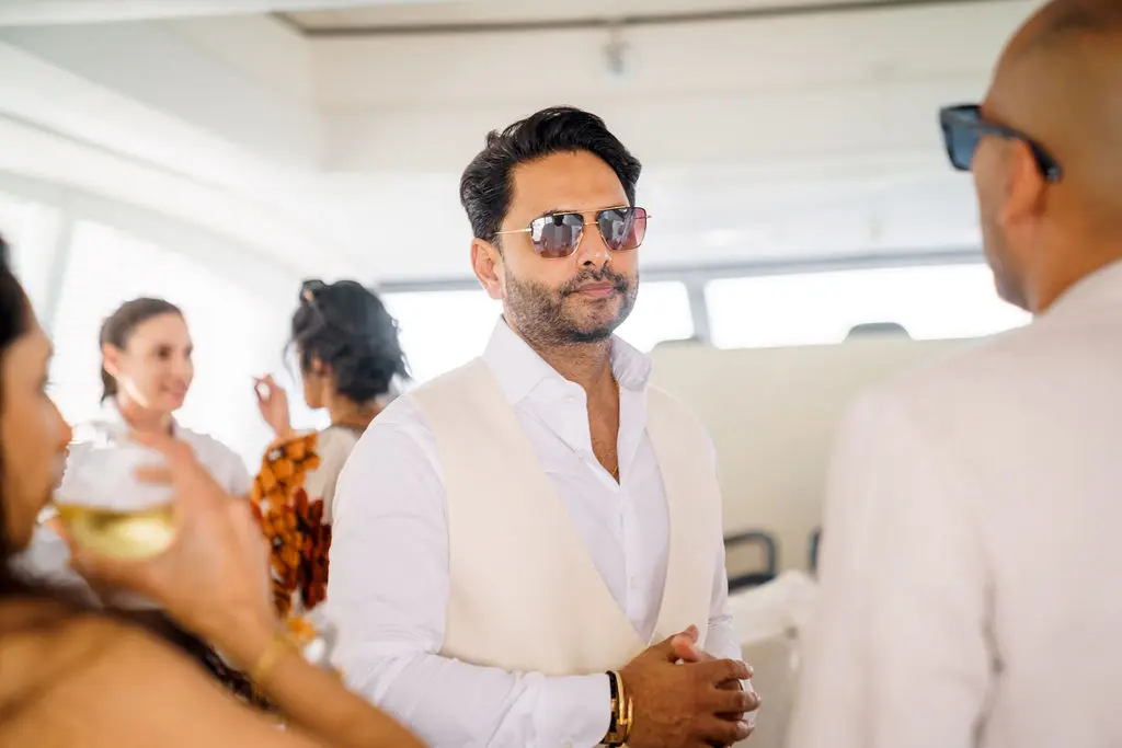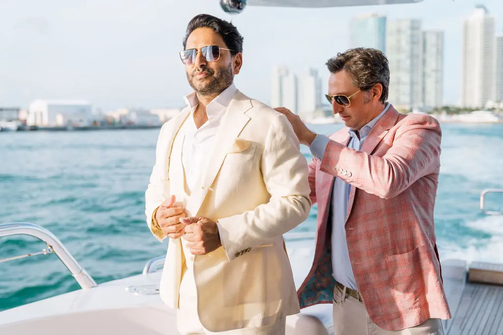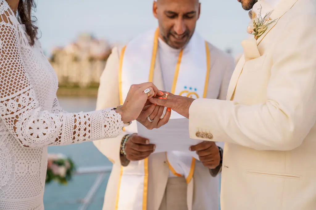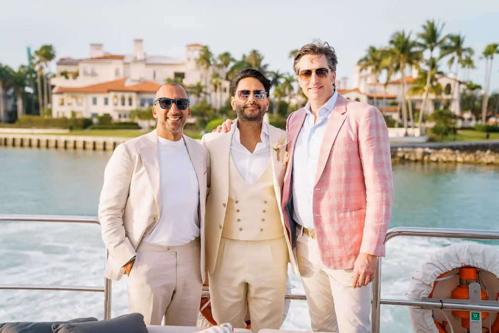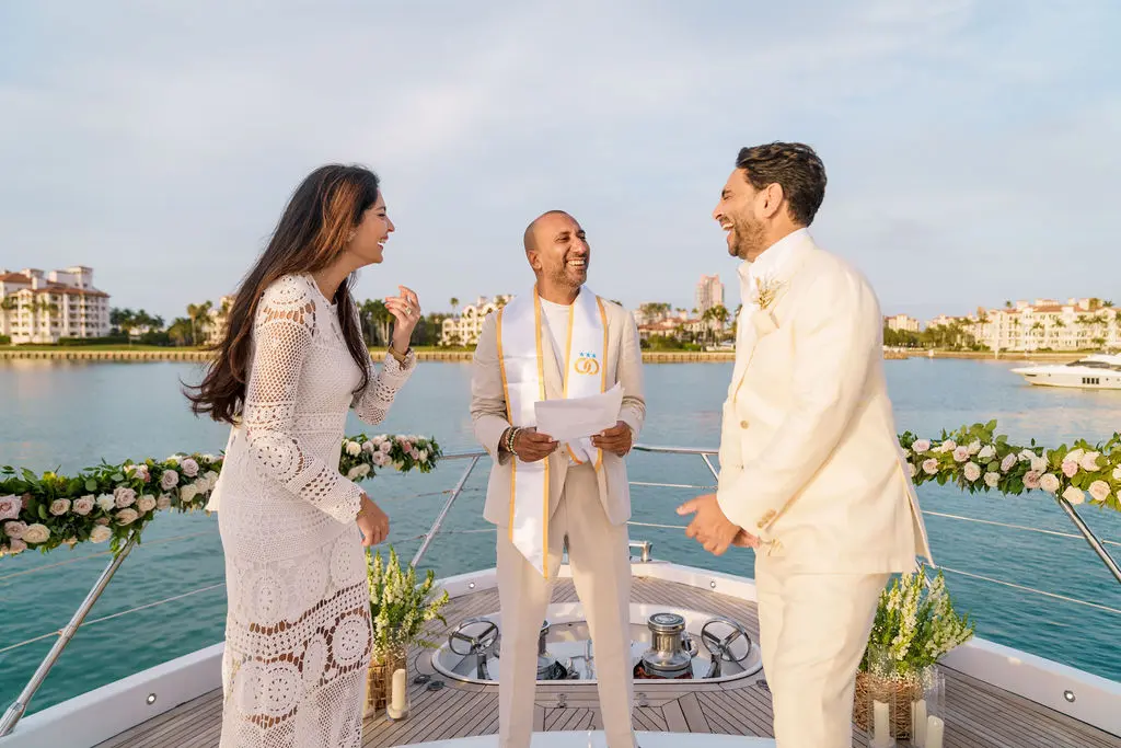 A Miami yacht wedding is one of the most exclusive and visually stunning celebrations you can plan in South Florida — and Shaheen & Rohan's day delivered on every promise that setting makes. The intimate ceremony on deck, surrounded only by their closest loved ones and the endless open water, had a quiet elegance that the sweeping aerial images capture beautifully. The floral-draped railings, the pastel Miami sky, the turquoise bay reflecting the city lights as evening fell — every detail was thoughtfully chosen and perfectly preserved on camera. This is what happens when luxury meets love on the water. If you're planning a yacht wedding or any luxury celebration in Miami and looking for a Miami wedding photographer who creates editorial, high-end galleries worthy of the most exclusive venues, Palms Isles photographs weddings across Miami, South Beach, and all of South Florida.