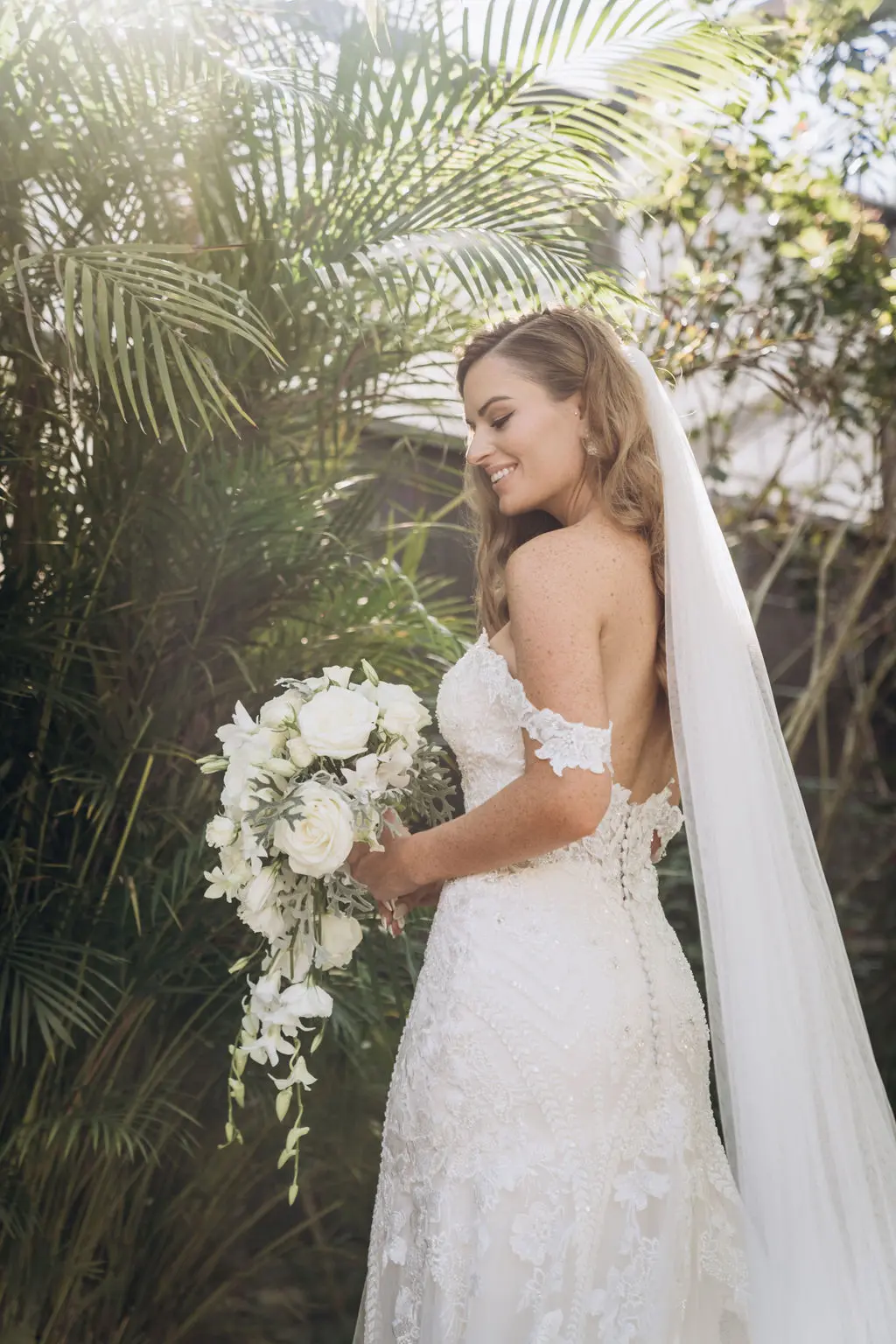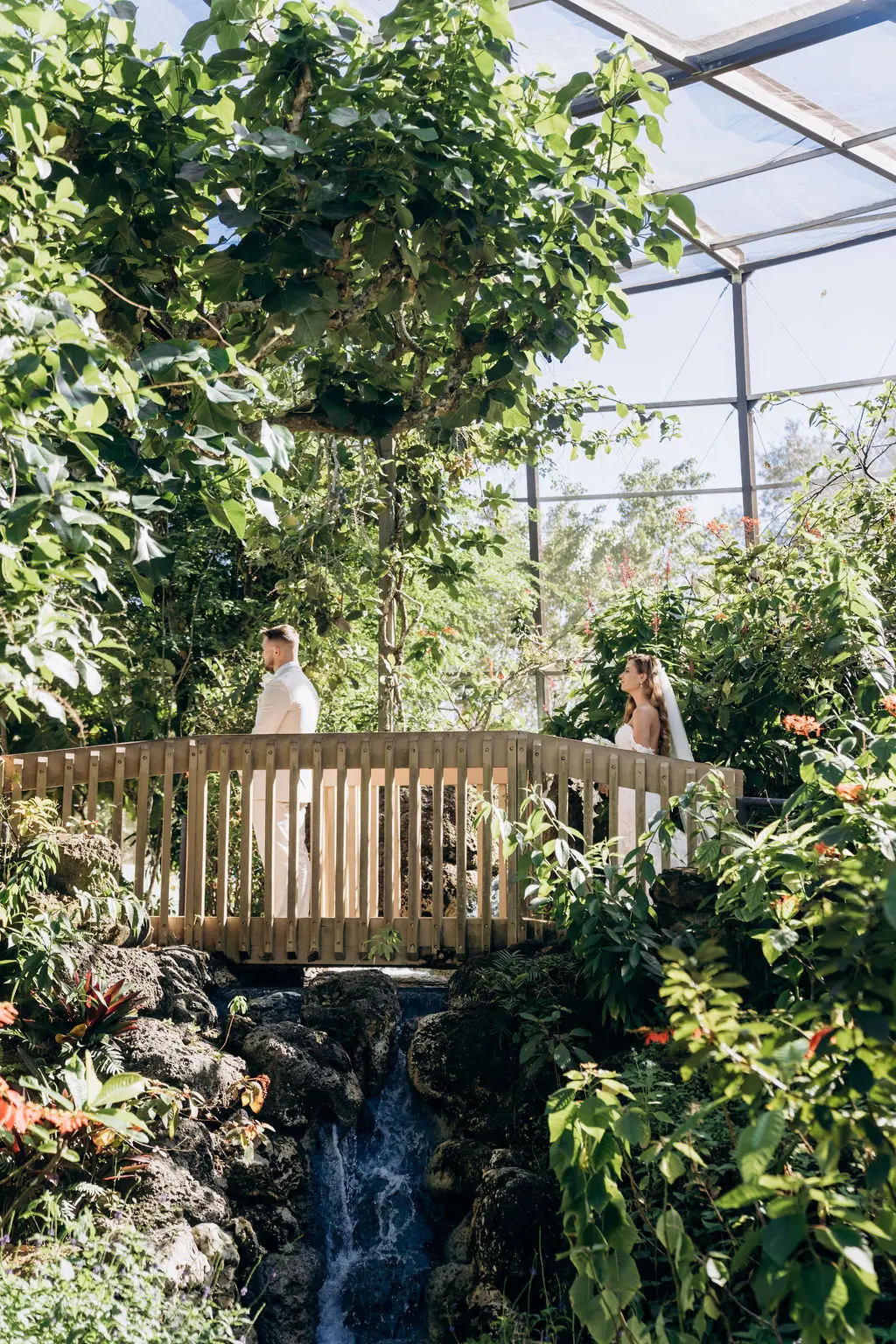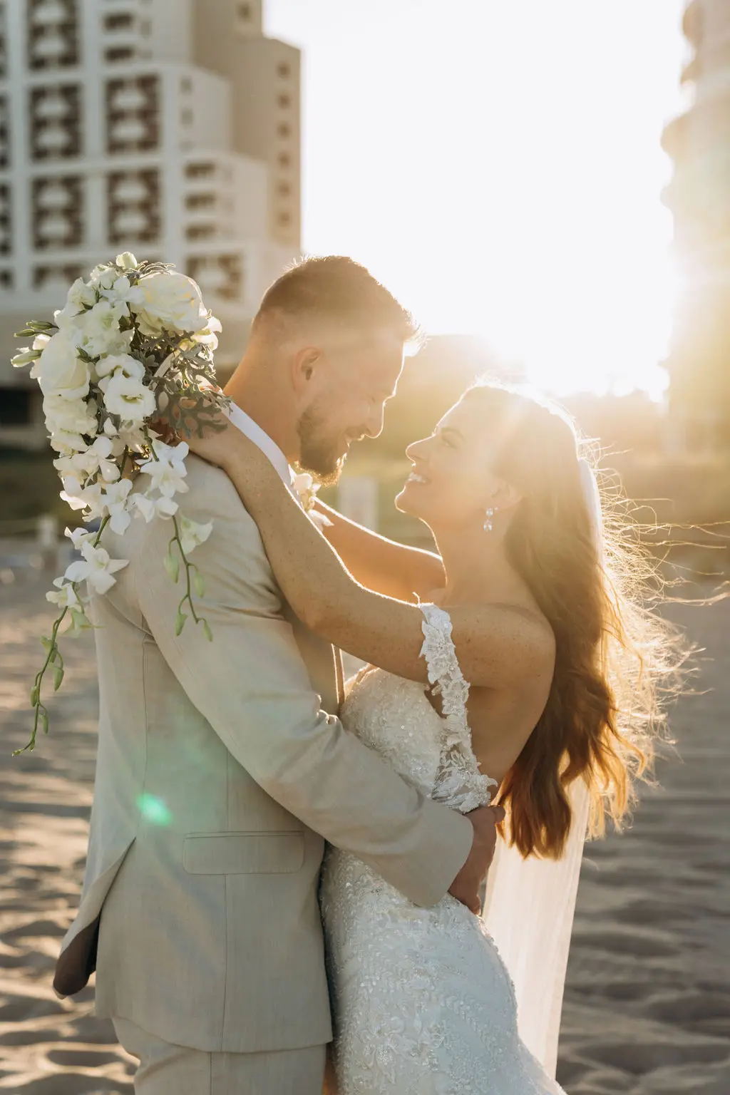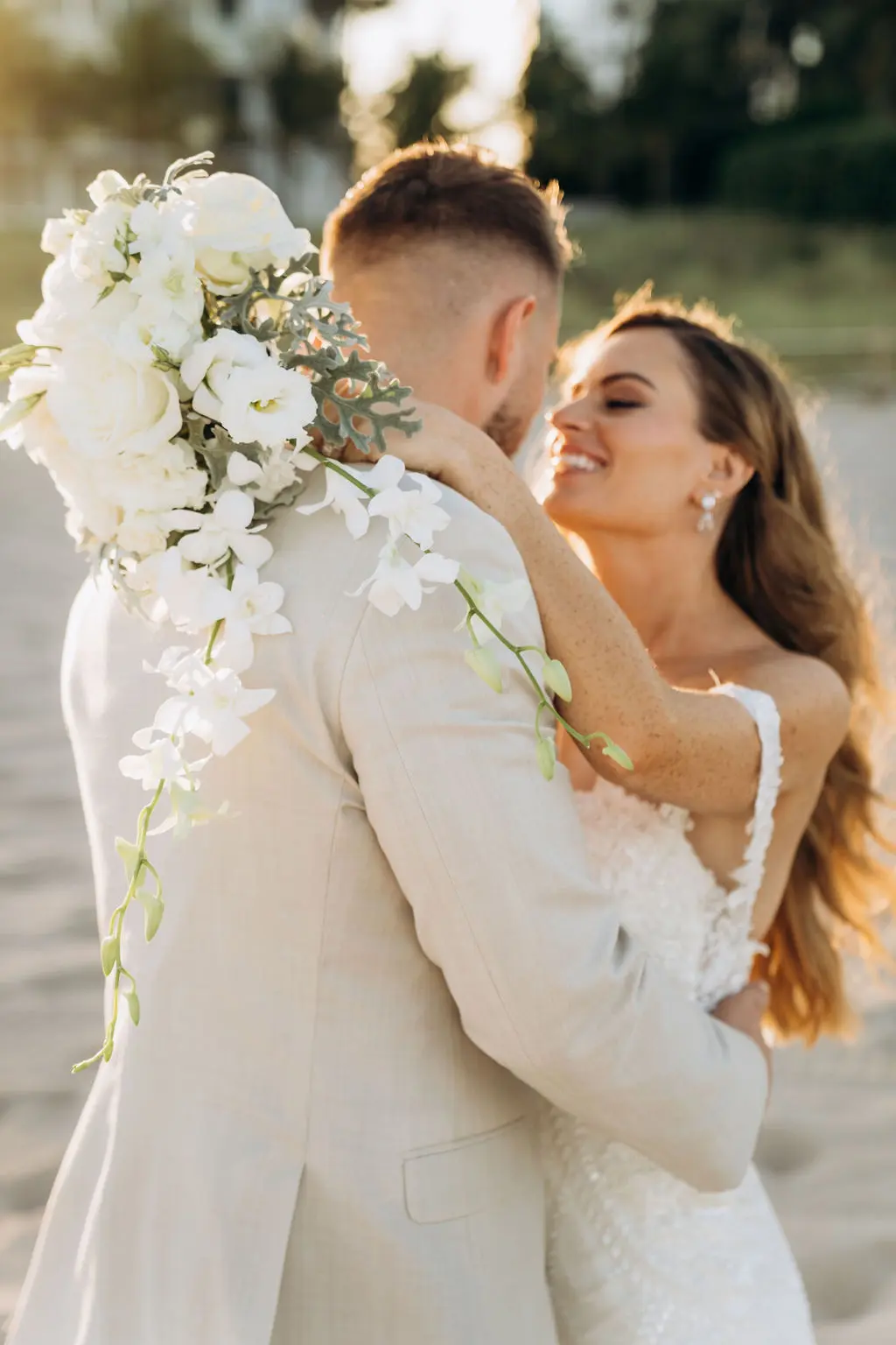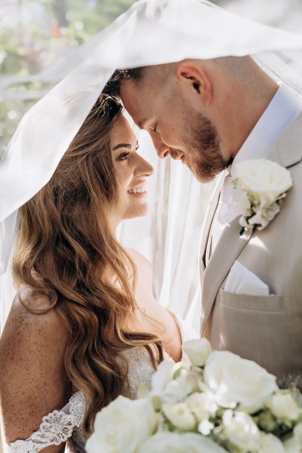Shannon & Quinlan's wedding photography at B Ocean Resort Fort Lauderdale is intimate, romantic, and completely stunning. The bride arrived in an intricate lace mermaid gown with a cathedral train and a dramatic floating veil — and the dip kiss portrait inside the resort's lush garden conservatory, veil billowing ethereally to the side, is one of those images you simply cannot look away from. The groom stood perfectly complemented in a warm sand-toned suit, and together they radiated the kind of effortless chemistry that makes every frame feel alive. From the flower-adorned beachfront ceremony with the gentle sound of Fort Lauderdale's ocean in the background, to the elegant indoor reception with a stunning tiered cake and a dance floor full of joy — every moment was captured with care. Captured by Palms Isles Fort Lauderdale wedding photography, this B Ocean Resort gallery is warm, beautiful, and deeply personal.