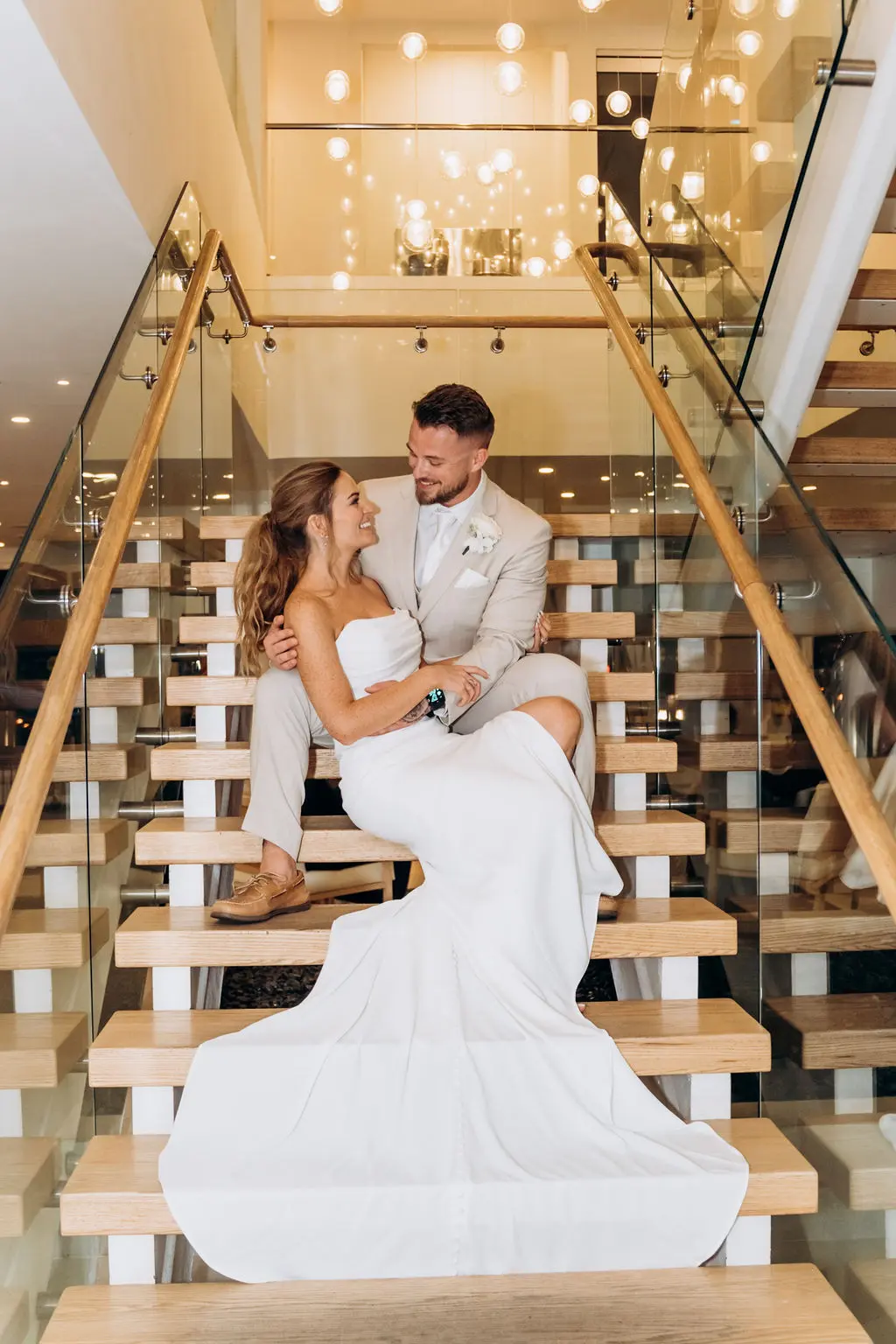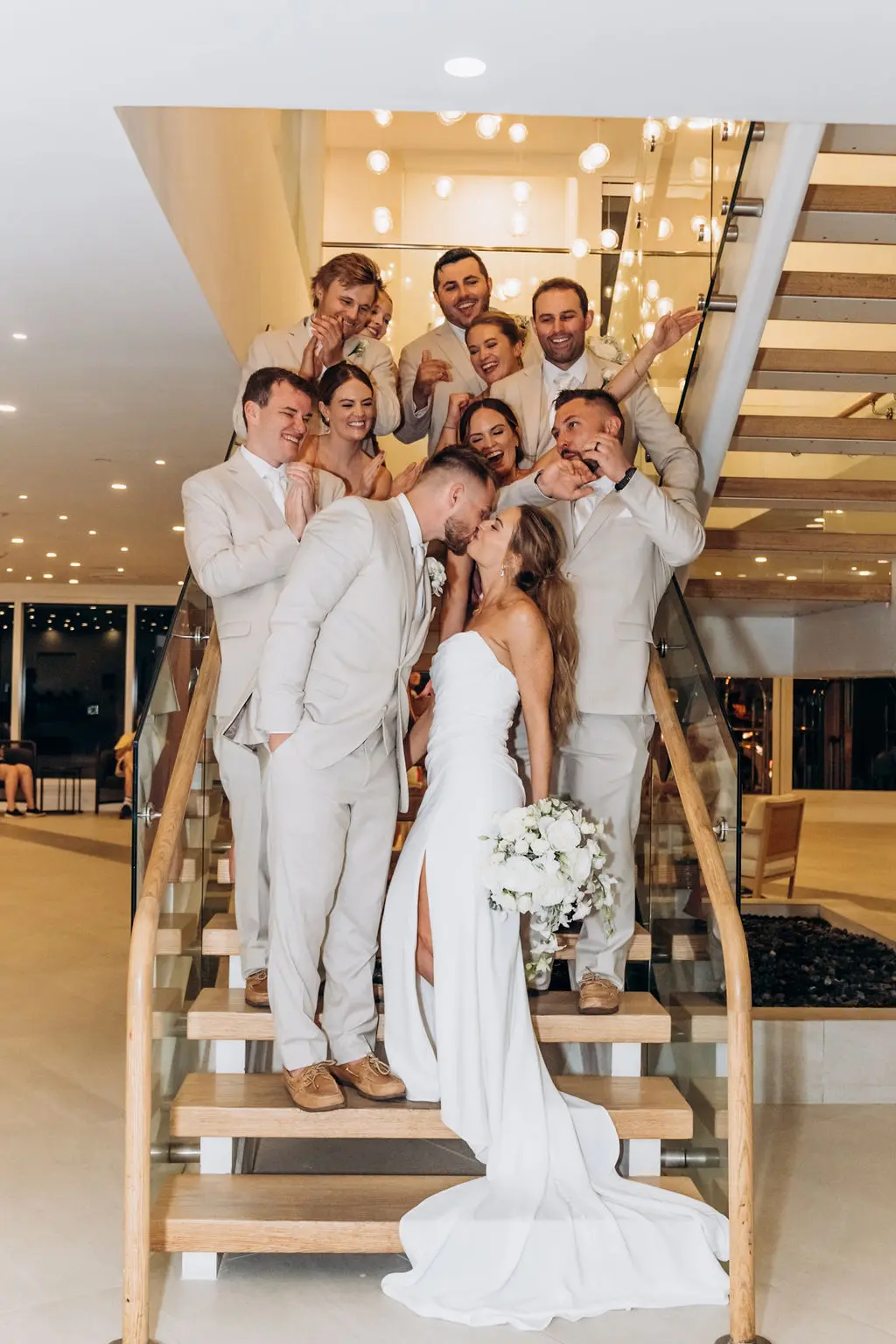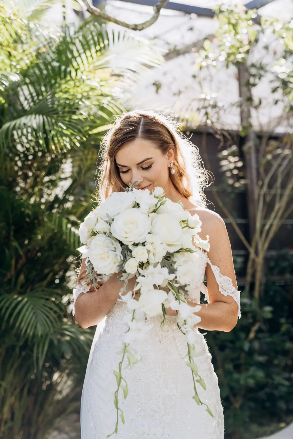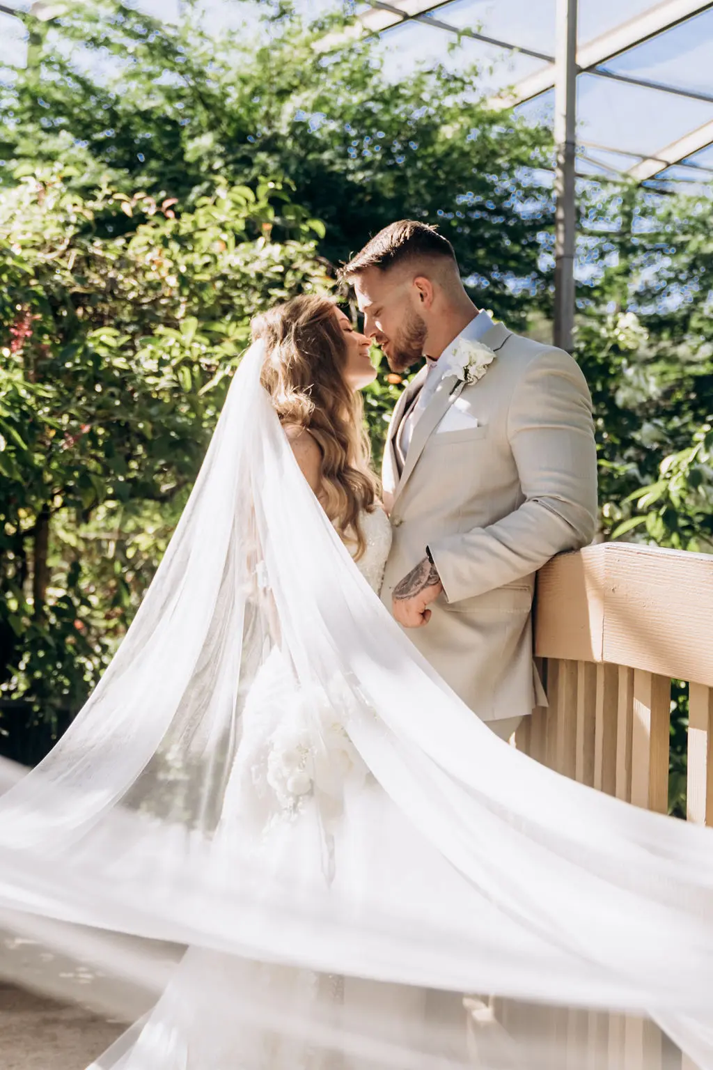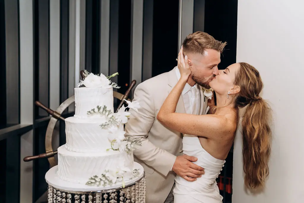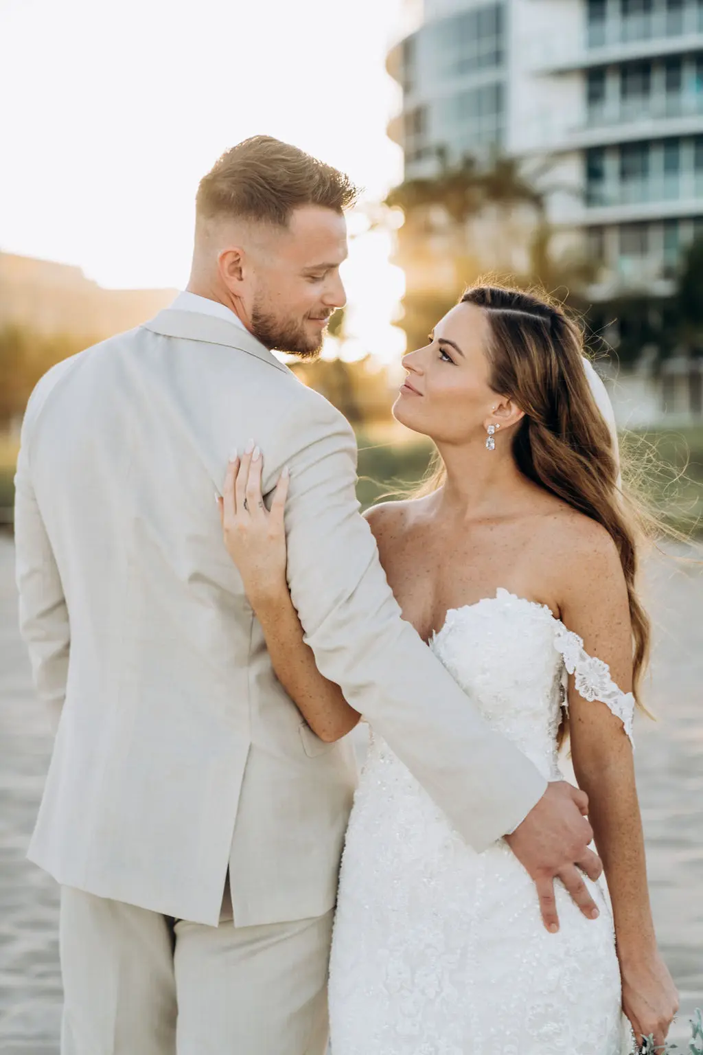 Shannon & Quinlan's wedding photography at B Ocean Resort Fort Lauderdale is intimate, romantic, and completely stunning. The bride arrived in an intricate lace mermaid gown with a cathedral train and a dramatic floating veil — and the dip kiss portrait inside the resort's lush garden conservatory, veil billowing ethereally to the side, is one of those images you simply cannot look away from. The groom stood perfectly complemented in a warm sand-toned suit, and together they radiated the kind of effortless chemistry that makes every frame feel alive. From the flower-adorned beachfront ceremony with the gentle sound of Fort Lauderdale's ocean in the background, to the elegant indoor reception with a stunning tiered cake and a dance floor full of joy — every moment was captured with care. Captured by Palms Isles Fort Lauderdale wedding photography, this B Ocean Resort gallery is warm, beautiful, and deeply personal.