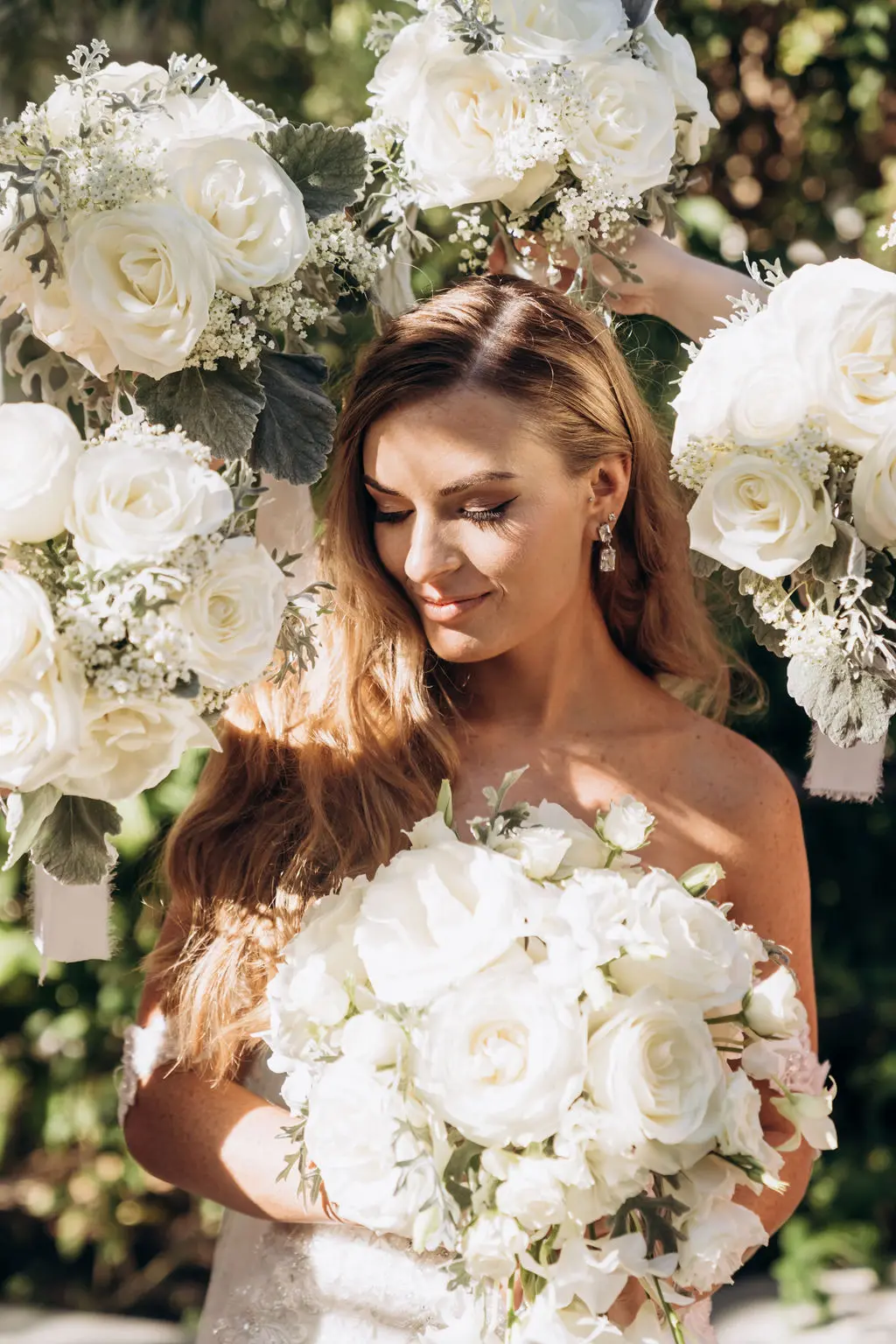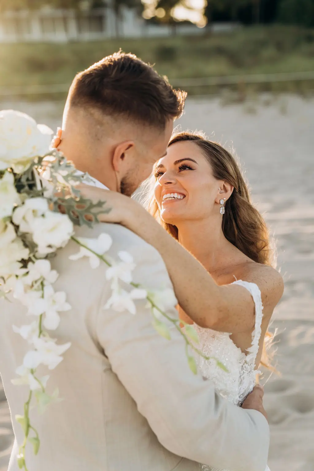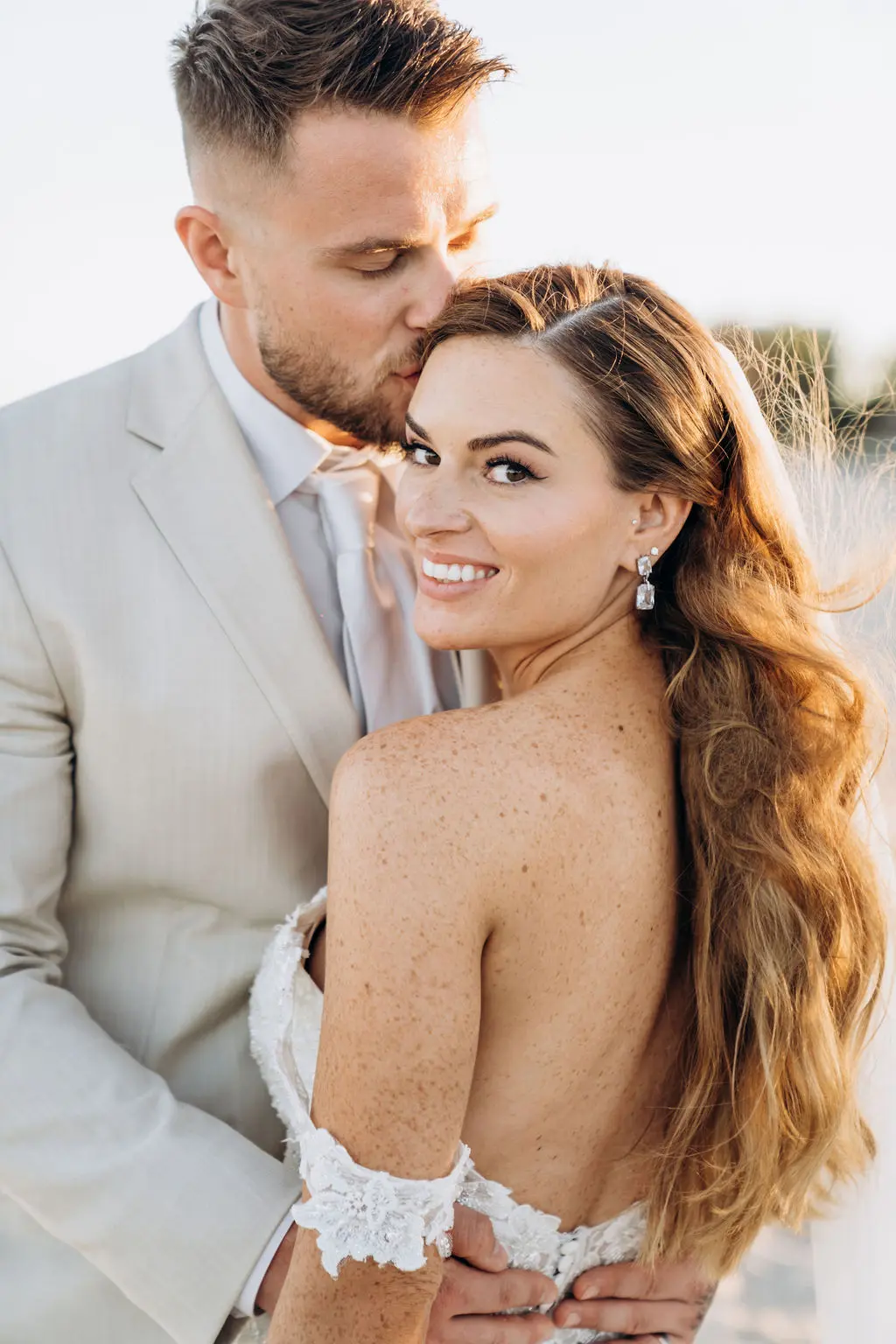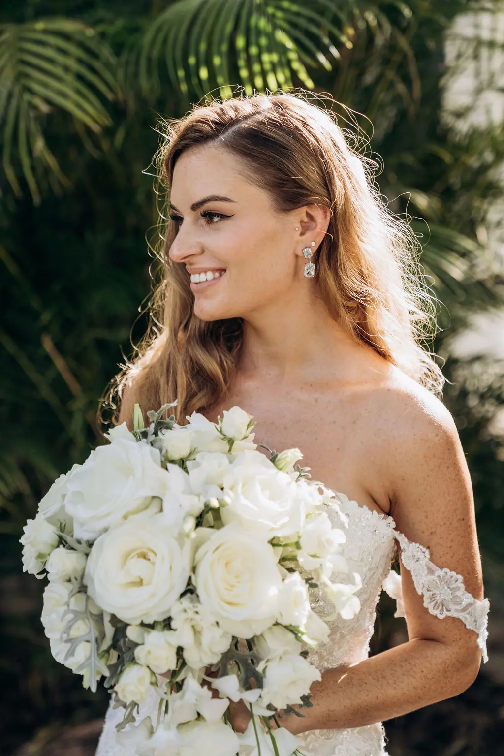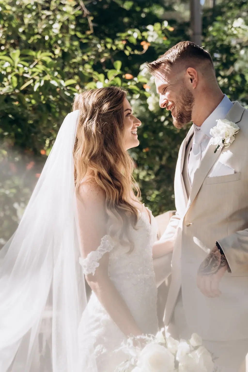 Shannon & Quinlan's wedding photography at B Ocean Resort Fort Lauderdale is intimate, romantic, and completely stunning. The bride arrived in an intricate lace mermaid gown with a cathedral train and a dramatic floating veil — and the dip kiss portrait inside the resort's lush garden conservatory, veil billowing ethereally to the side, is one of those images you simply cannot look away from. The groom stood perfectly complemented in a warm sand-toned suit, and together they radiated the kind of effortless chemistry that makes every frame feel alive. From the flower-adorned beachfront ceremony with the gentle sound of Fort Lauderdale's ocean in the background, to the elegant indoor reception with a stunning tiered cake and a dance floor full of joy — every moment was captured with care. Captured by Palms Isles Fort Lauderdale wedding photography, this B Ocean Resort gallery is warm, beautiful, and deeply personal.
