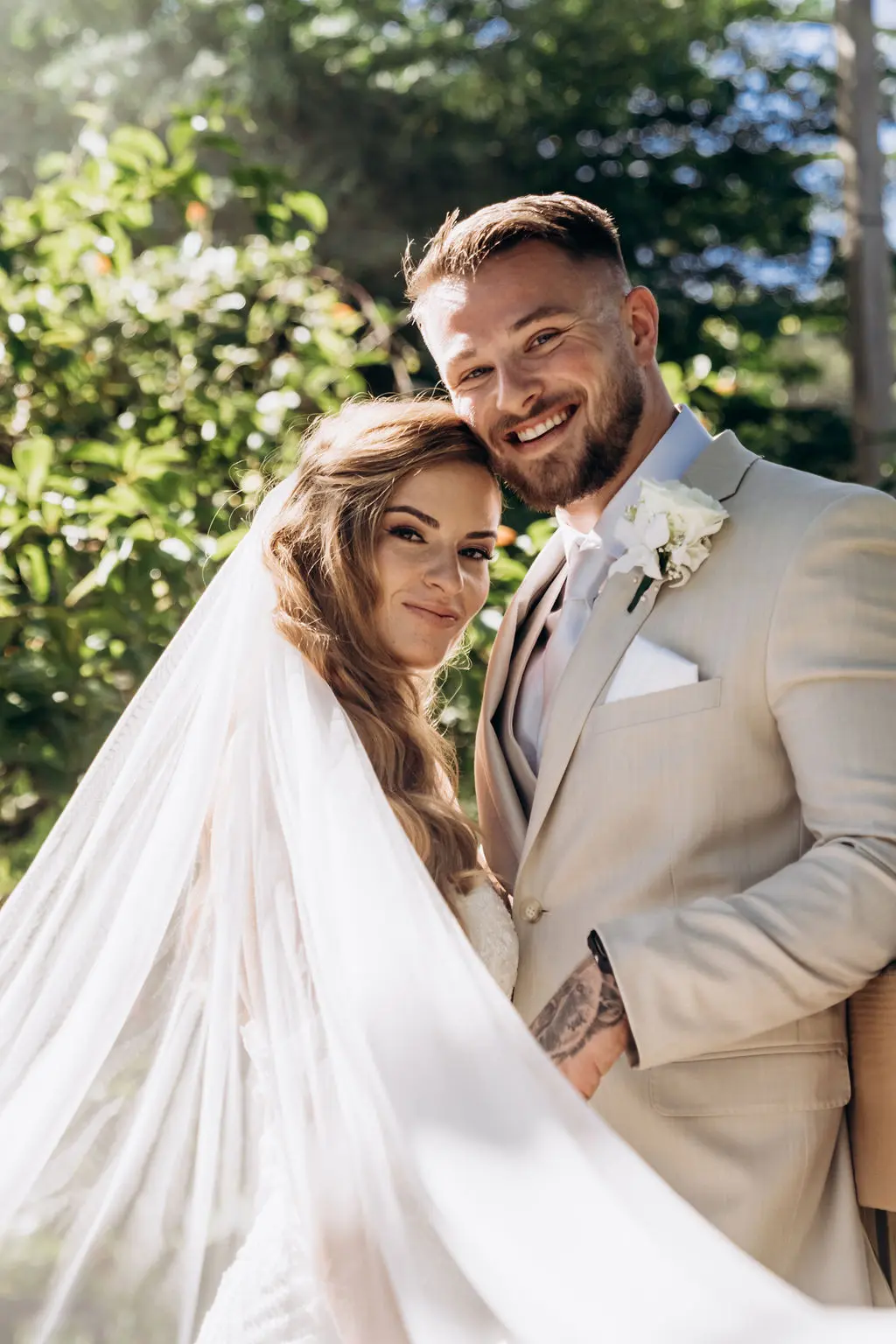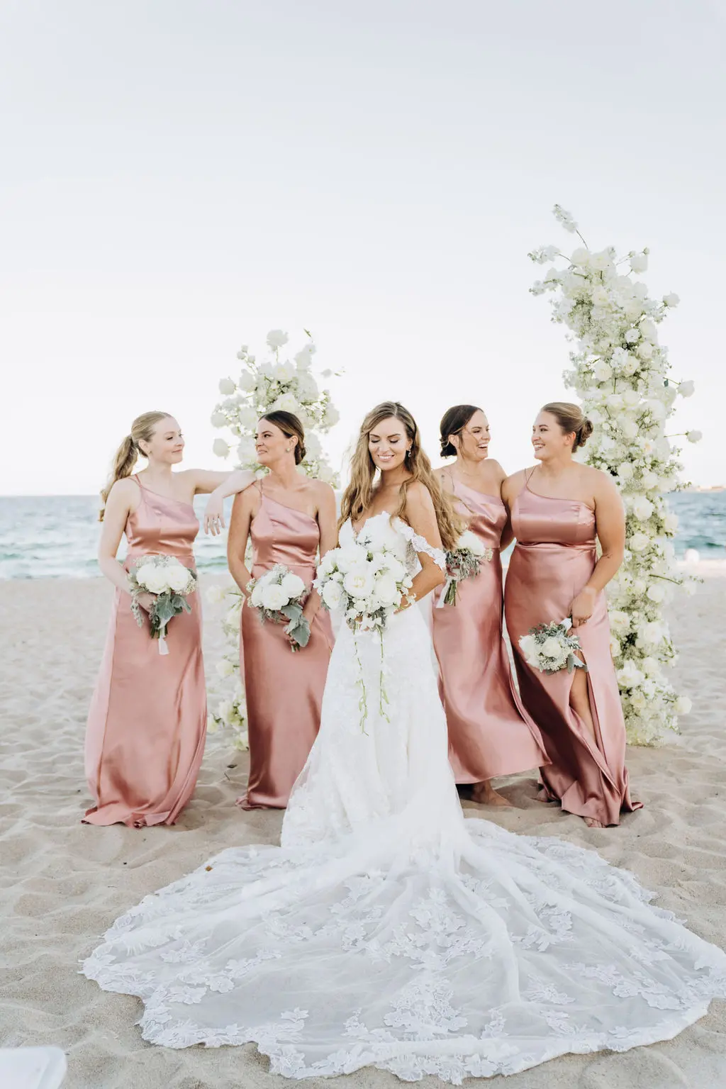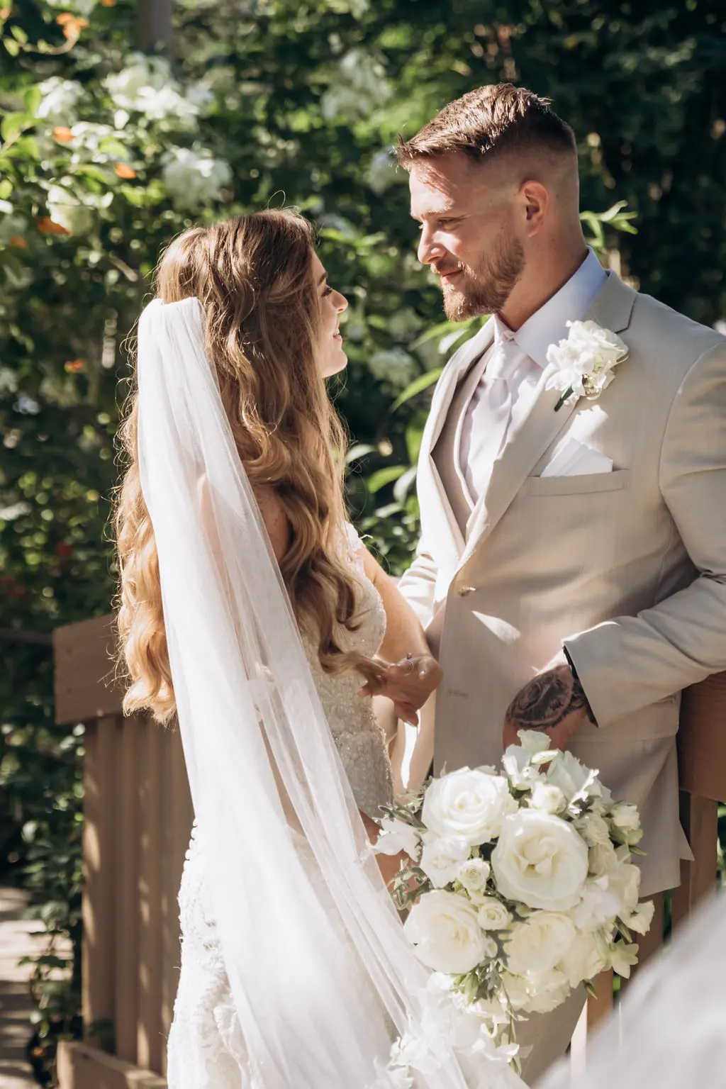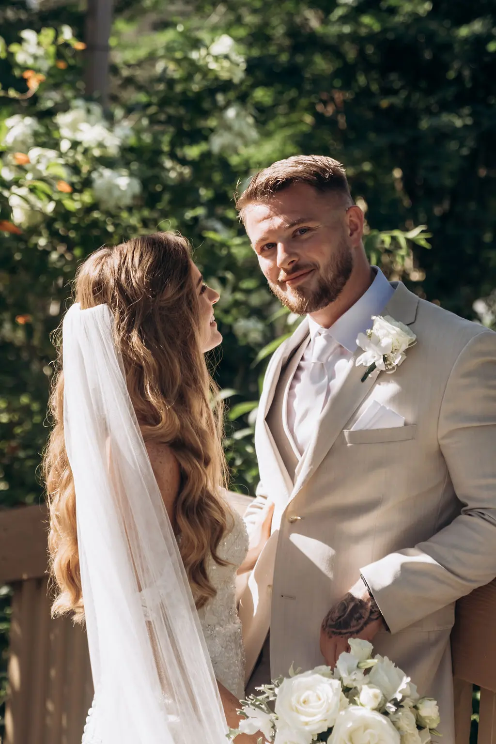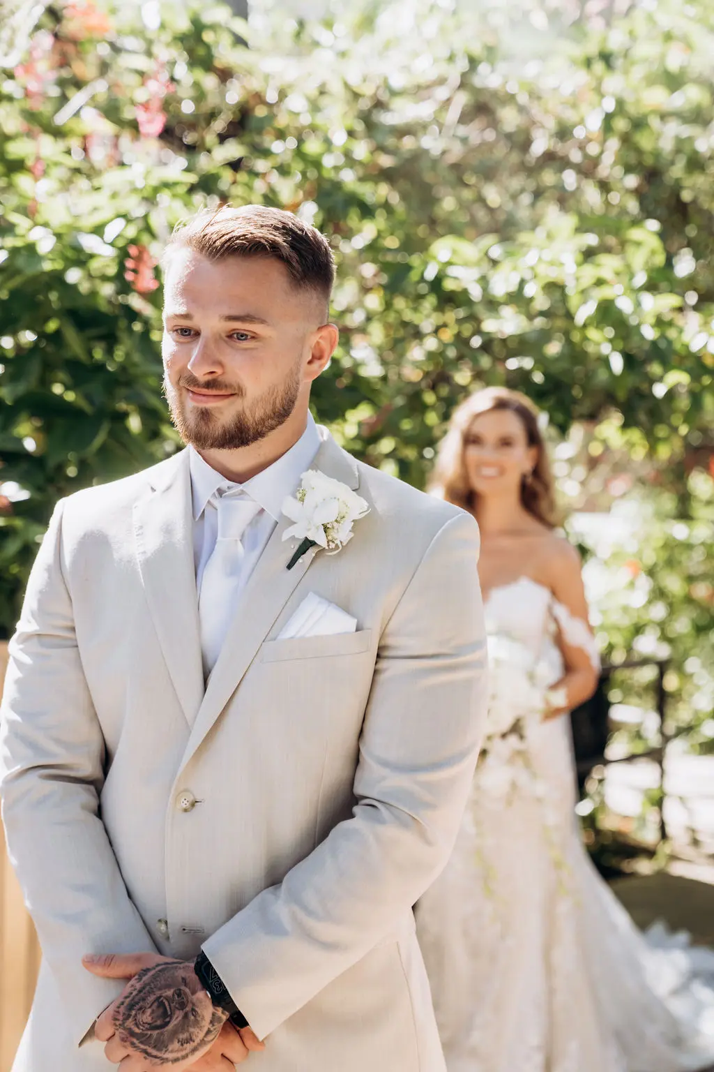 Shannon & Quinlan's wedding photography at B Ocean Resort Fort Lauderdale is intimate, romantic, and completely stunning. The bride arrived in an intricate lace mermaid gown with a cathedral train and a dramatic floating veil — and the dip kiss portrait inside the resort's lush garden conservatory, veil billowing ethereally to the side, is one of those images you simply cannot look away from. The groom stood perfectly complemented in a warm sand-toned suit, and together they radiated the kind of effortless chemistry that makes every frame feel alive. From the flower-adorned beachfront ceremony with the gentle sound of Fort Lauderdale's ocean in the background, to the elegant indoor reception with a stunning tiered cake and a dance floor full of joy — every moment was captured with care. Captured by Palms Isles Fort Lauderdale wedding photography, this B Ocean Resort gallery is warm, beautiful, and deeply personal.