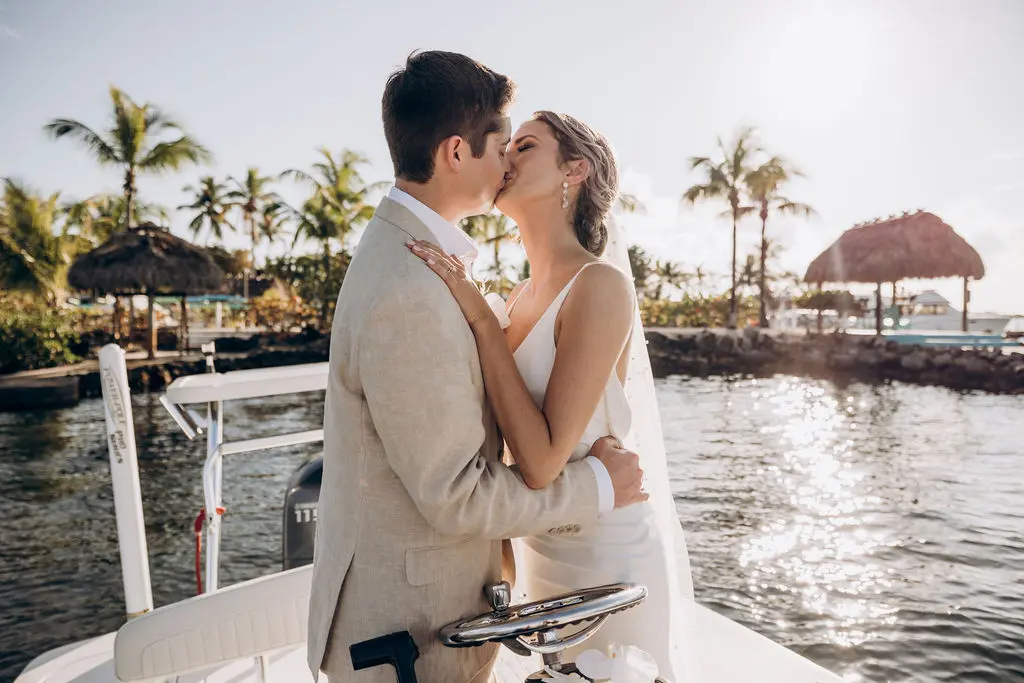 Key Largo is where the Florida Keys begin — and where some of the most joyful, cinematic, and breathtaking wedding photography in all of Florida is made. Sophia & Jackson's gallery captures that energy completely. From the intimate beach ceremony surrounded by ocean views and warm Florida light, to the unforgettable boat portraits with champagne in hand and the entire Keys as their backdrop, every image in this collection radiates the happiness of two people exactly where they're meant to be. The mesmerizing sunsets, the turquoise water, the laid-back luxury of the Keys lifestyle — all of it woven into a wedding gallery that feels as free and joyful as the day itself. If you're planning a beach or waterfront wedding in Key Largo, Islamorada, or anywhere in the Florida Keys and looking for a Key Largo wedding photographer who captures real, unscripted joy in stunning natural settings, Palms Isles photographs weddings throughout the Florida Keys, Miami, and all of South Florida.